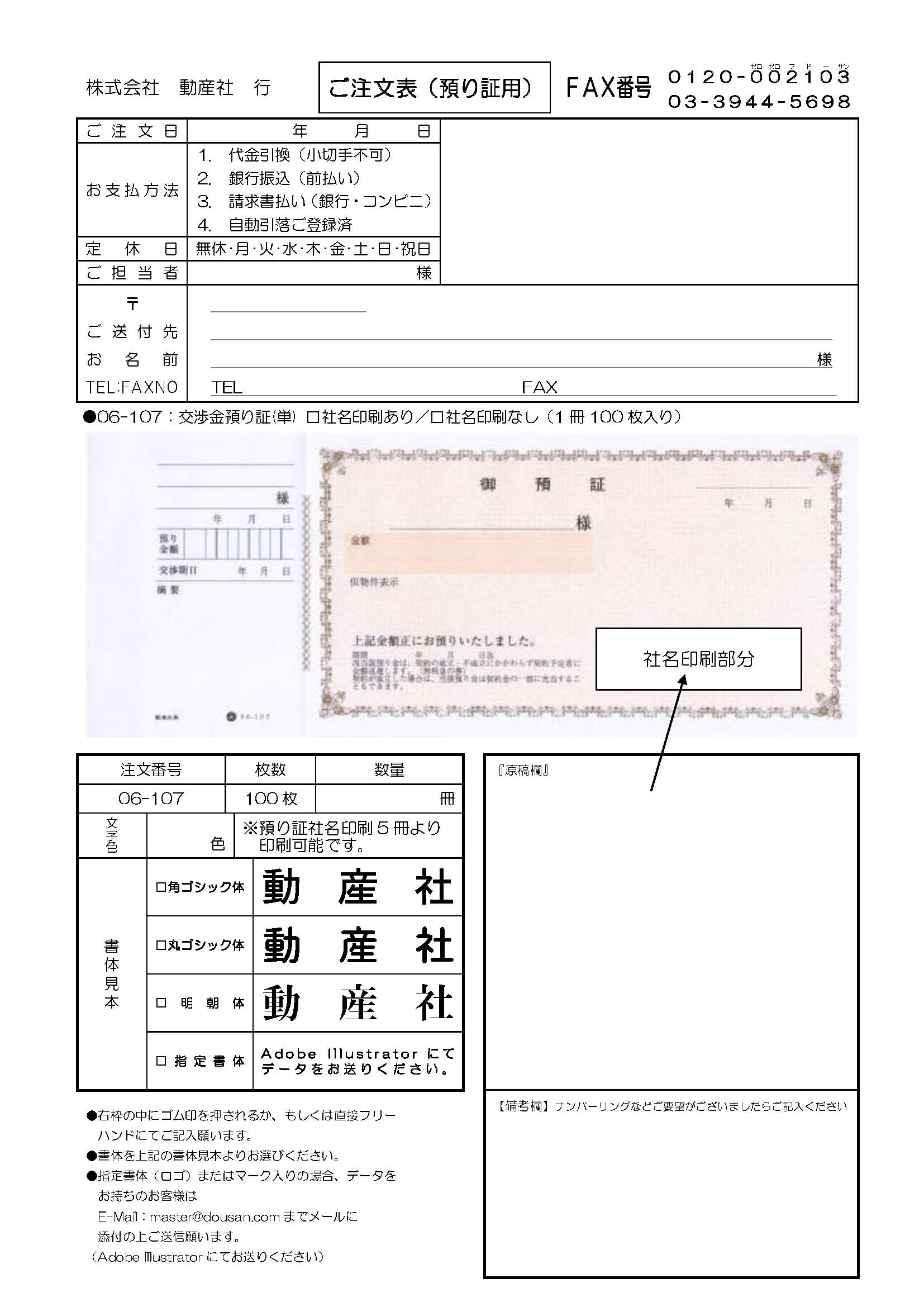※ナンバーリングは社名印刷ご希望のお客様に限ります。- 【お電話・ファクスでもご注文いただけます】