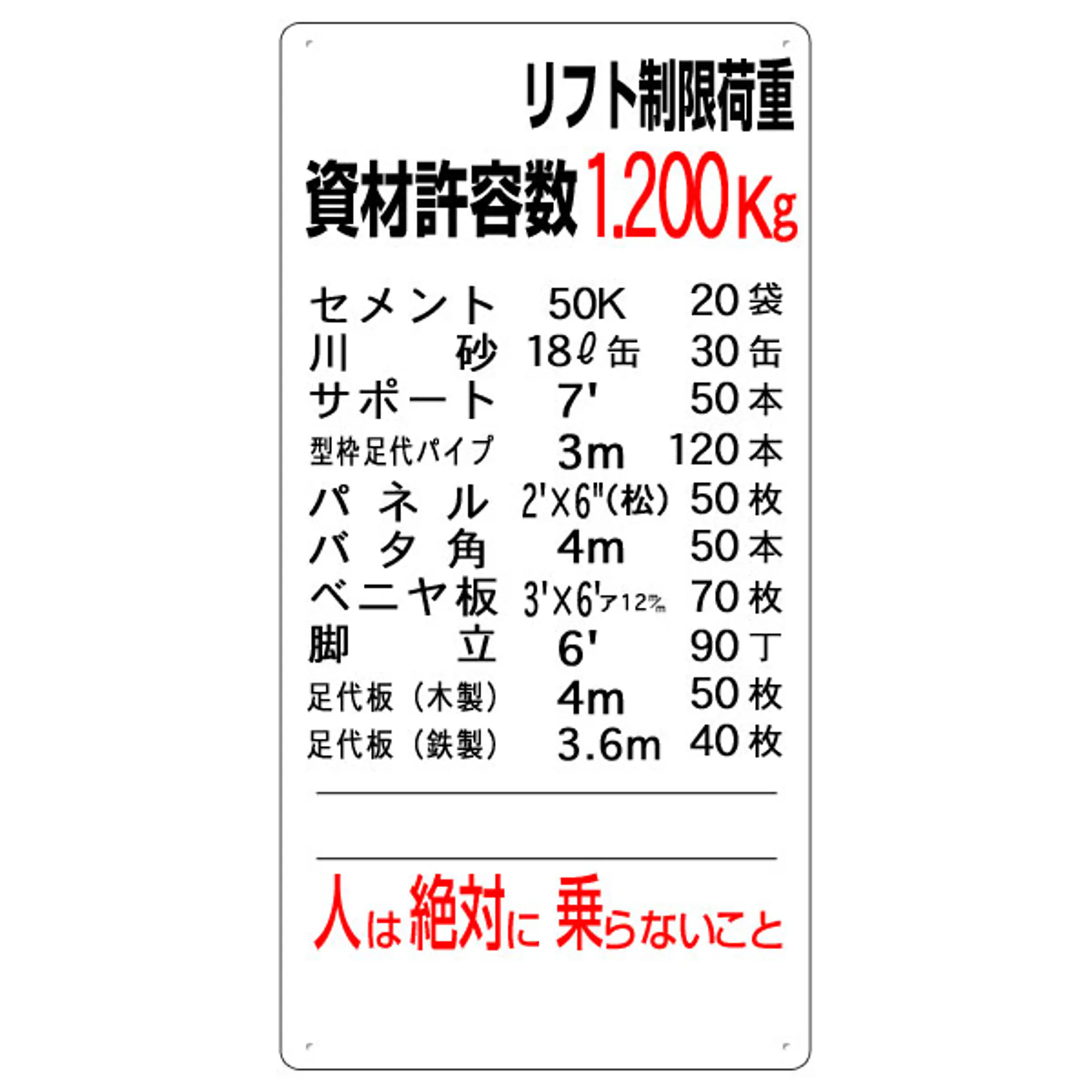 まんが標識(リフト制限荷重)