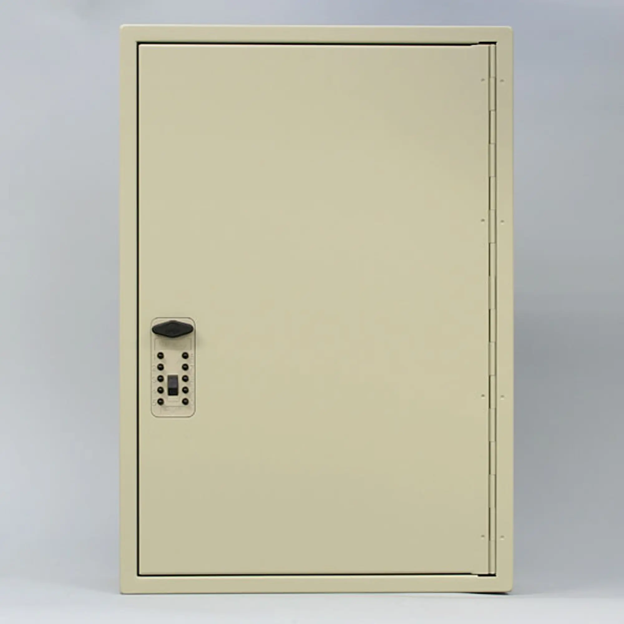 プッシュボタン(暗証番号式)施解錠で、堅牢な金属ボディです。