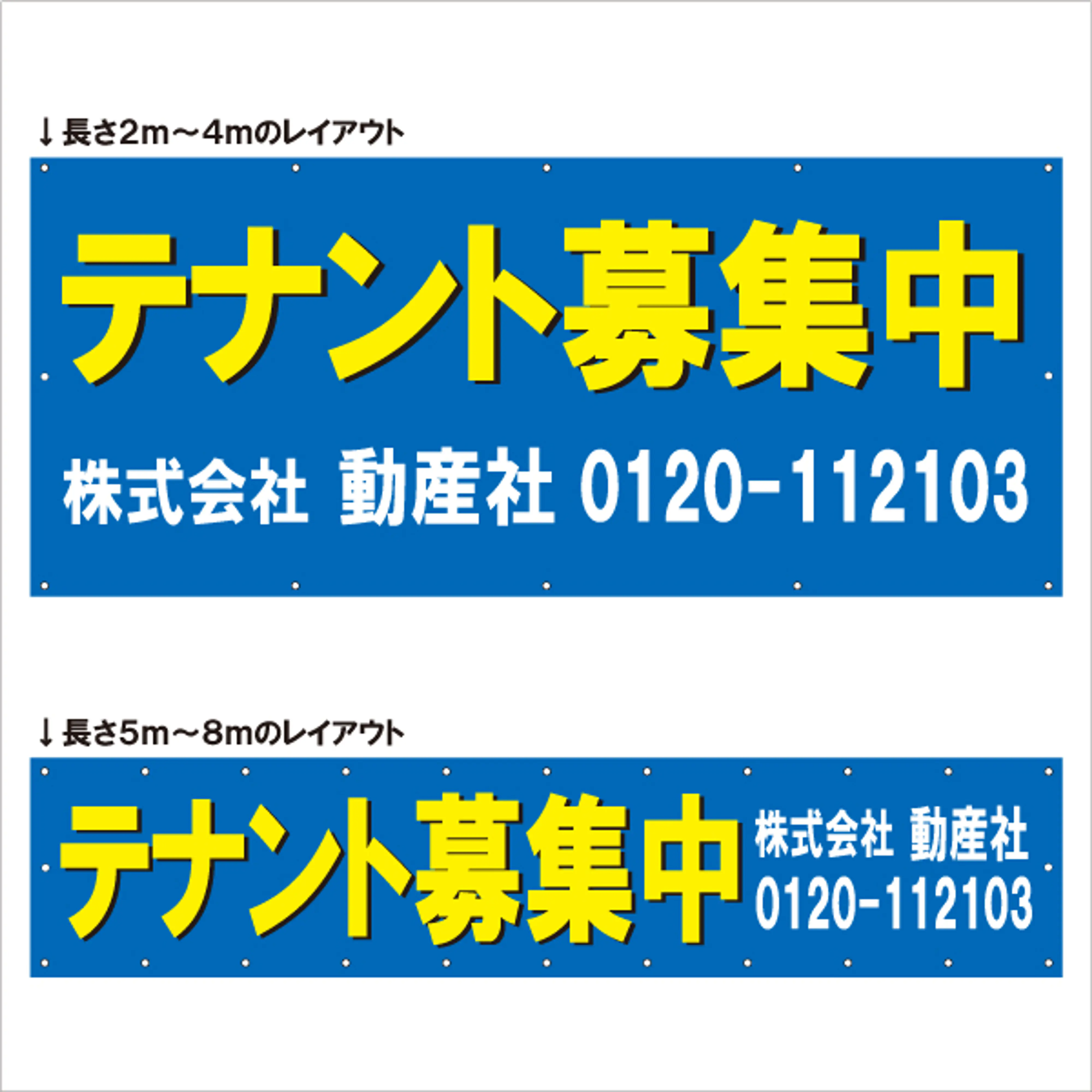 こちらの横断幕は御社の社名・電話番号をお入れしての価格となります。