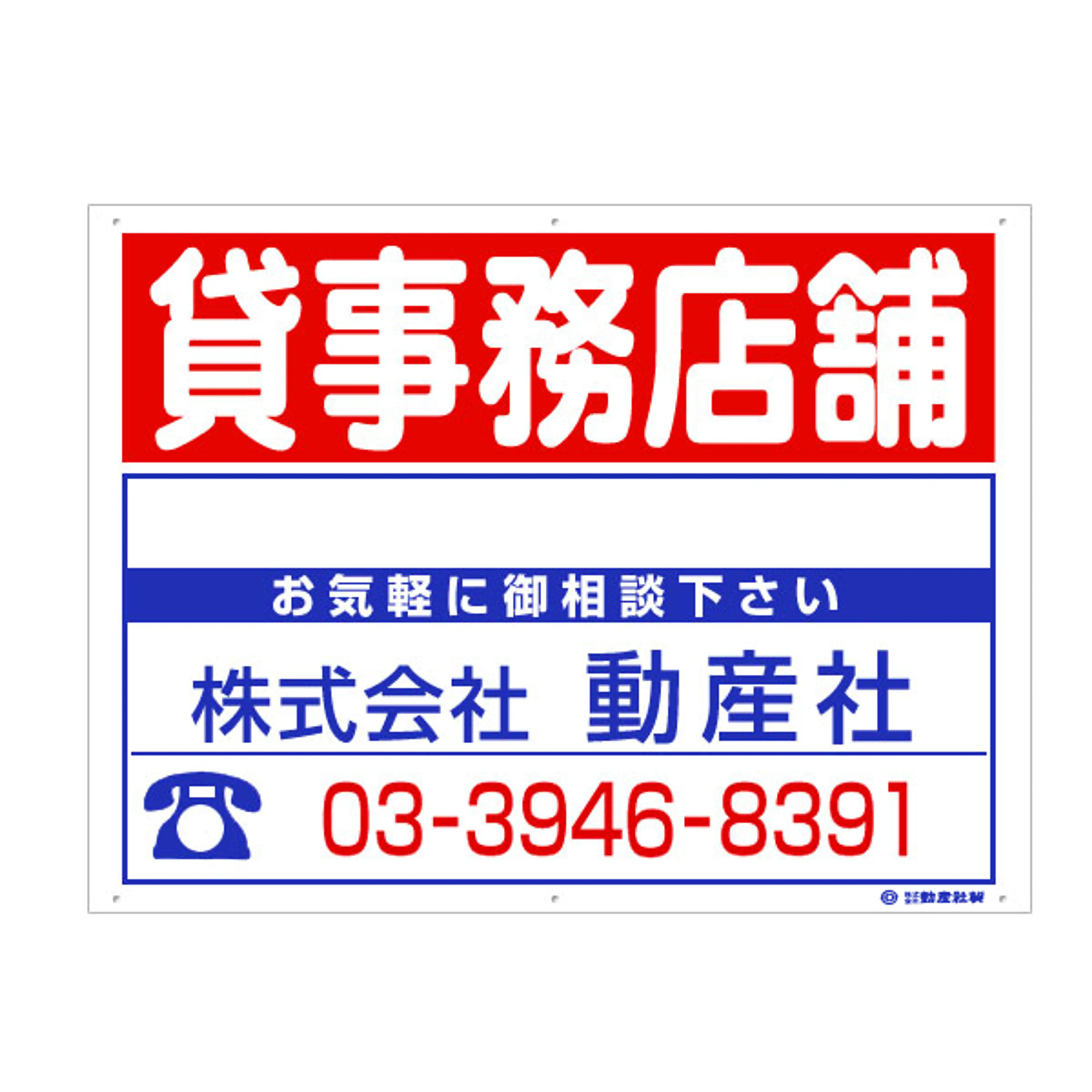 プラスチック募集看板名入れ無し:貸事務店舗
