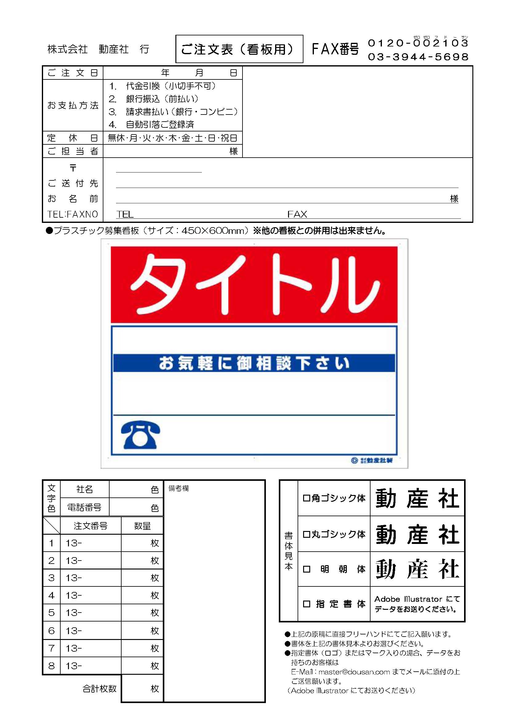2枚以上は下記タイトルの組み合わせもOKです。- 13-370:プラスチック製募集看板:空室有り
