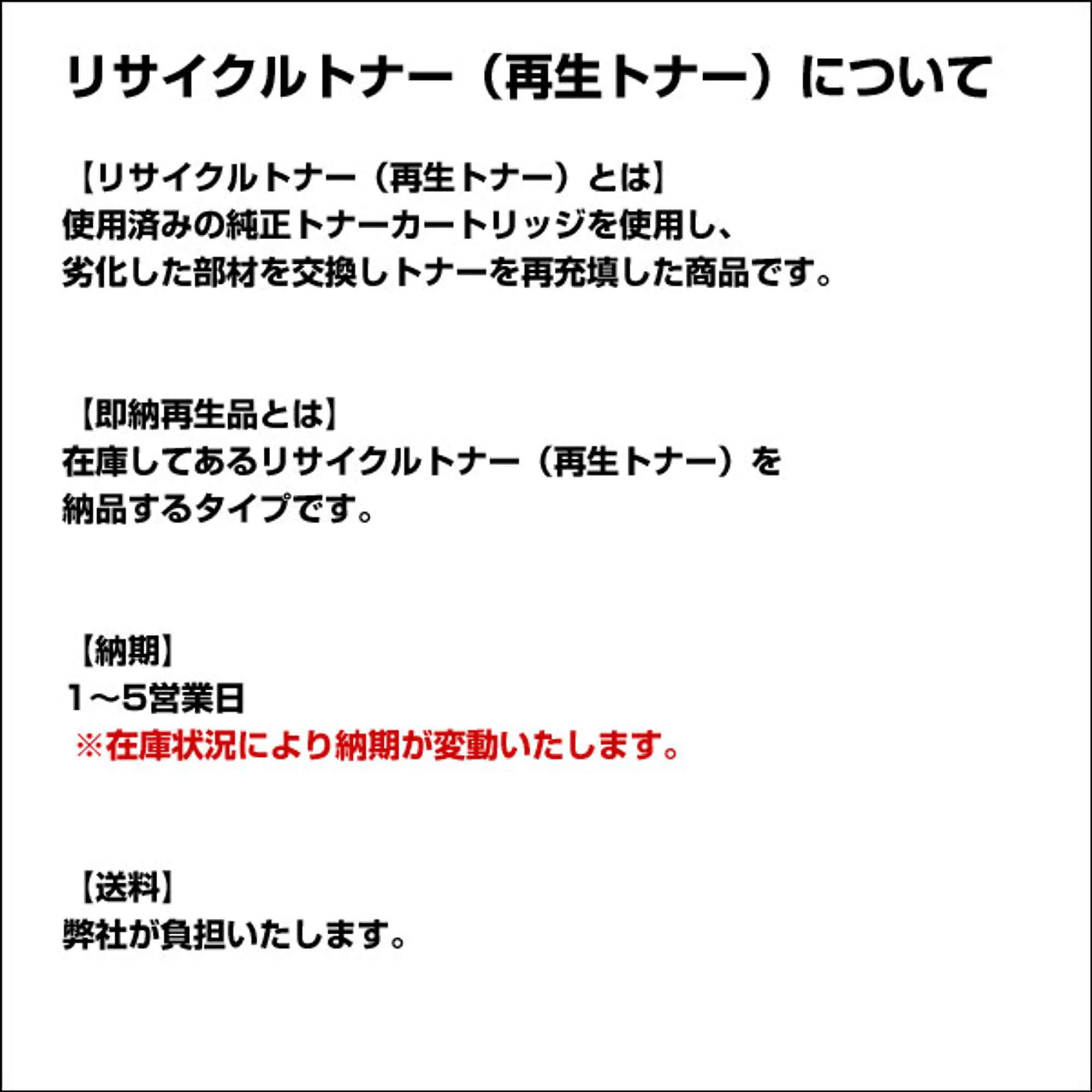 即納再生品 納期 1-5日