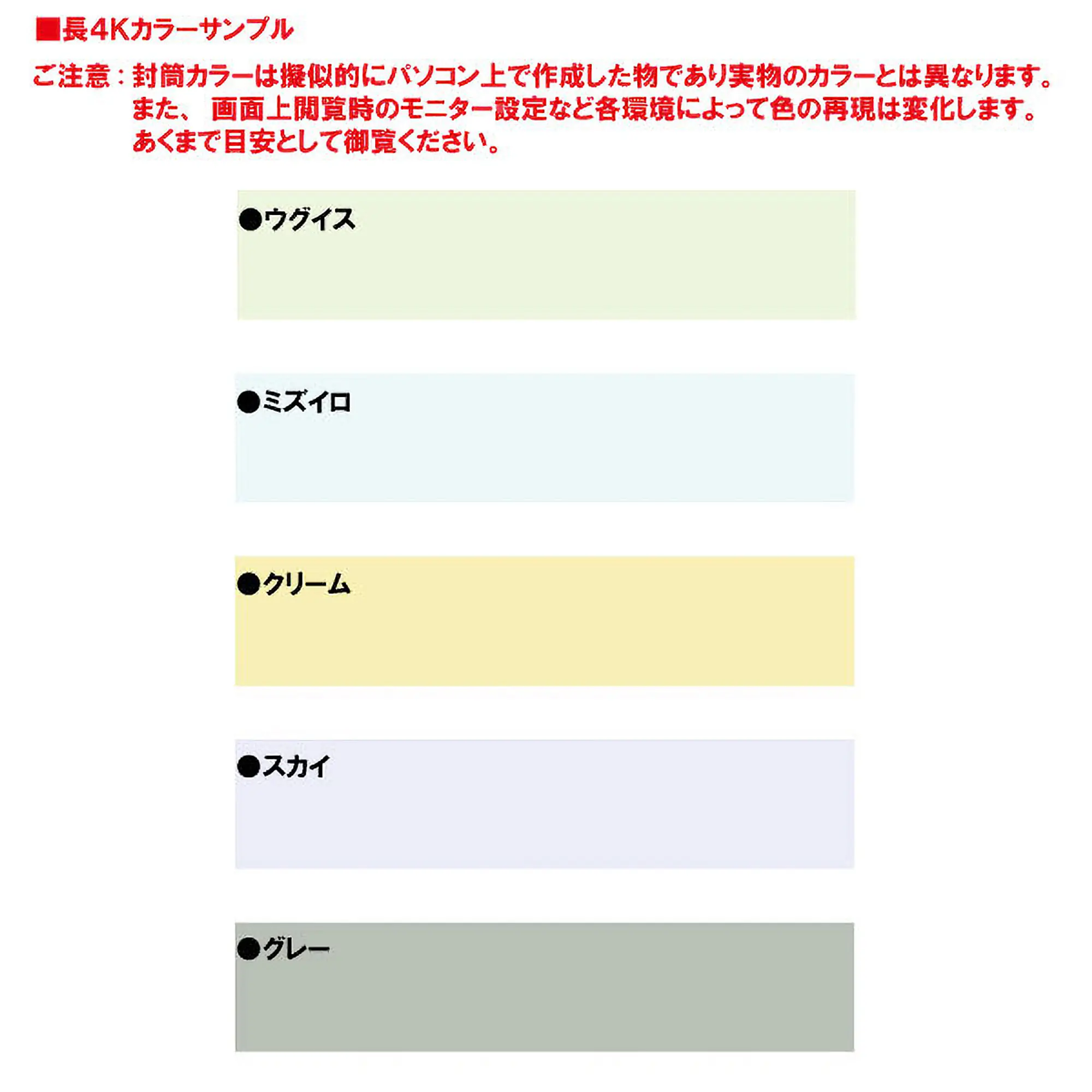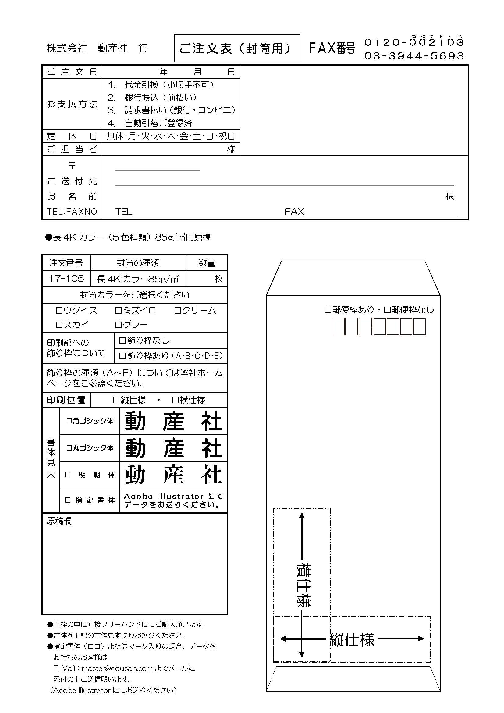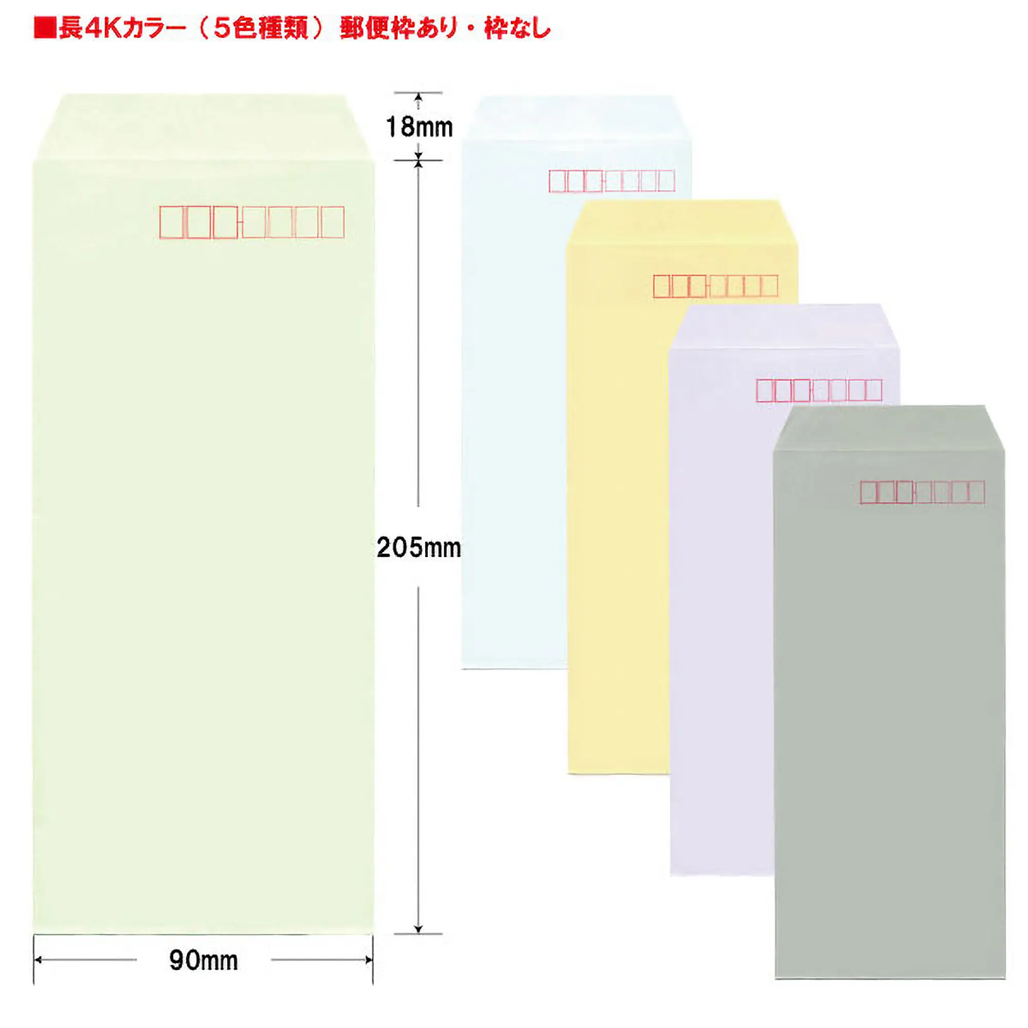 - 長4Kカラー封筒(用紙B5サイズ三折用)※郵便枠あり(赤)・枠なしの種類があります。