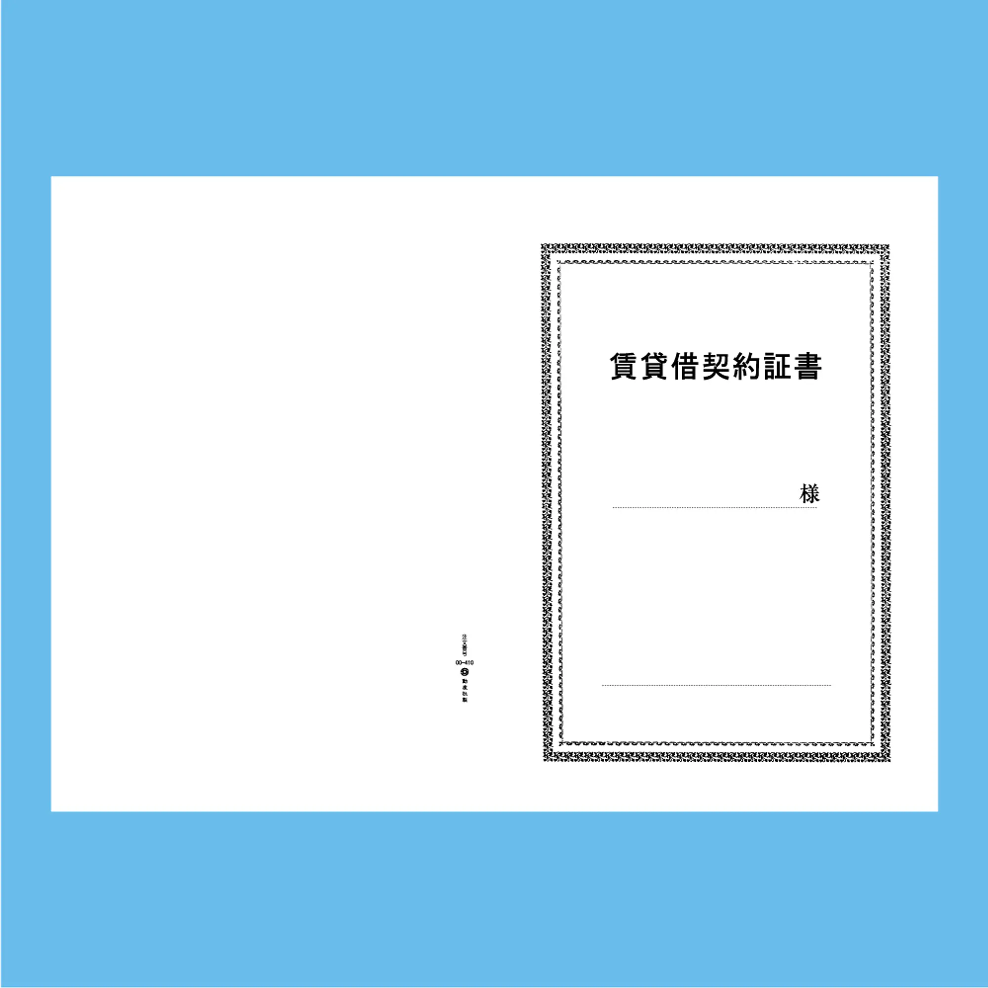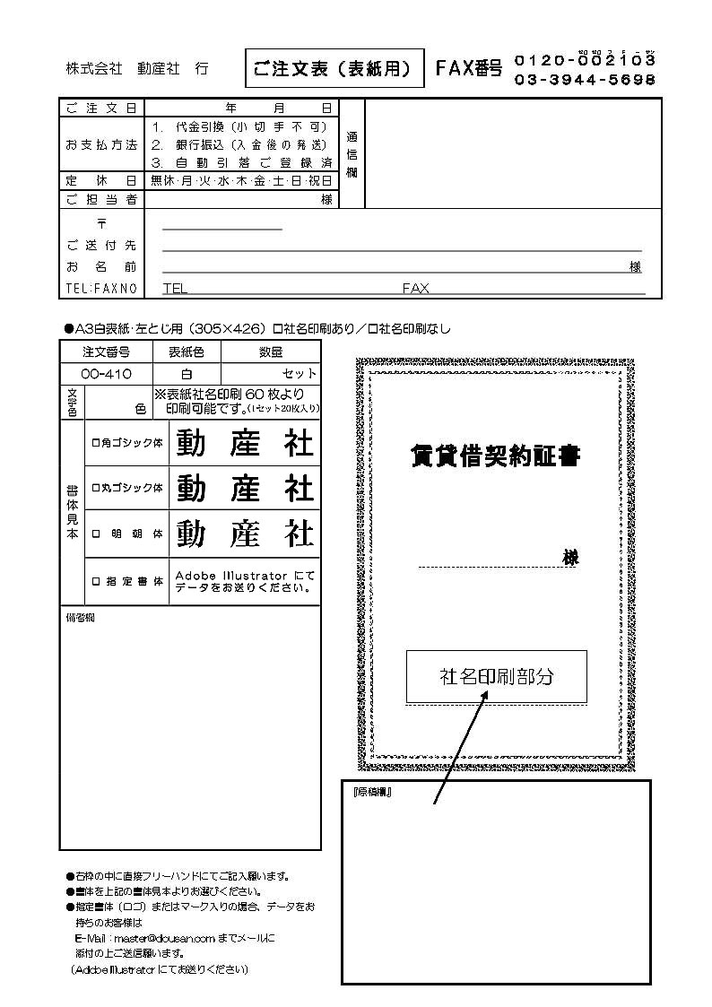 賃貸借契約証書 表紙:A3サイズ(白上質紙):1セット20枚入り