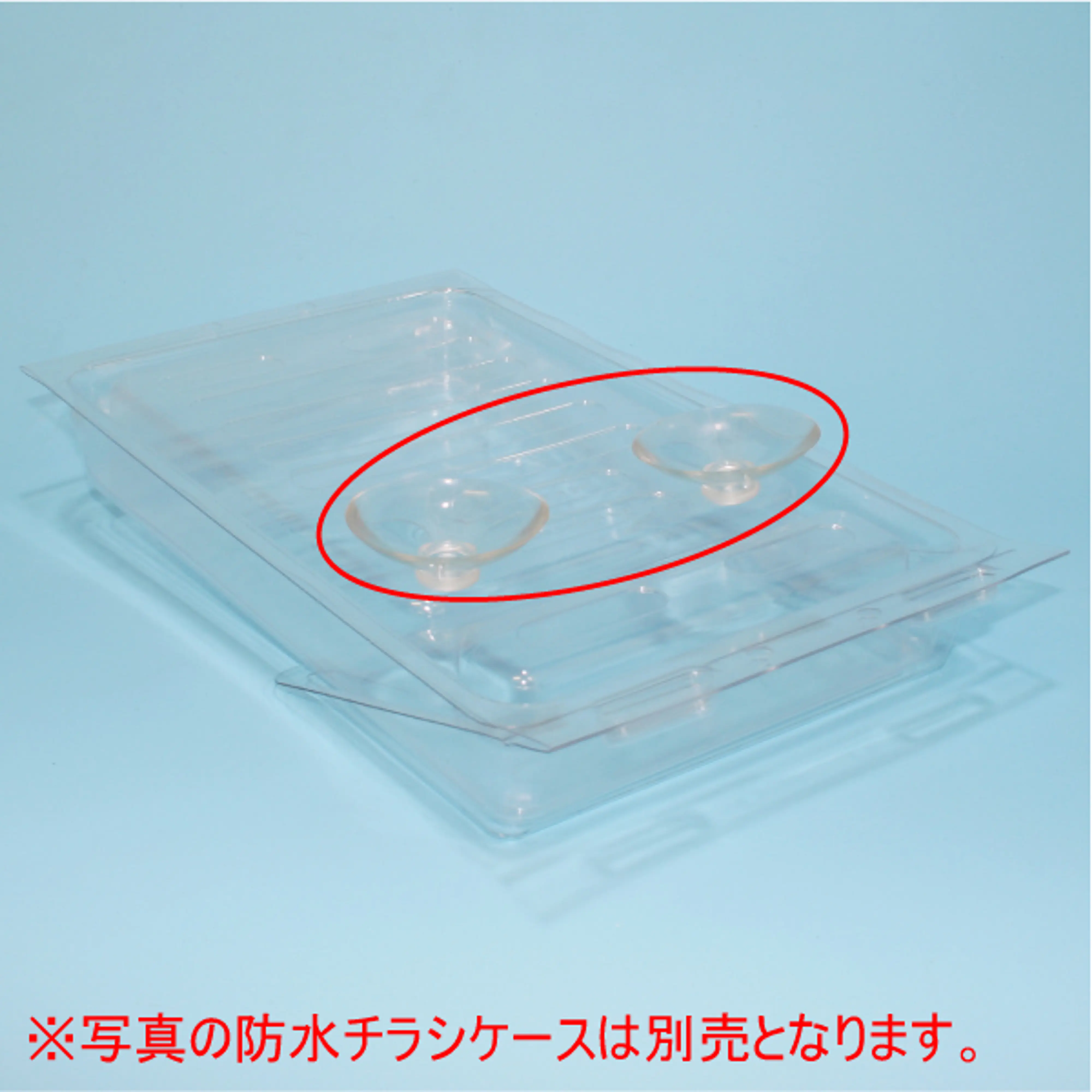 ご使用の際は、防水チラシケースの裏面に吸盤を取り付ける穴が有りますので、穴の蓋部分を取り除き吸盤を取り付けご使用ください。(2個入1セット)