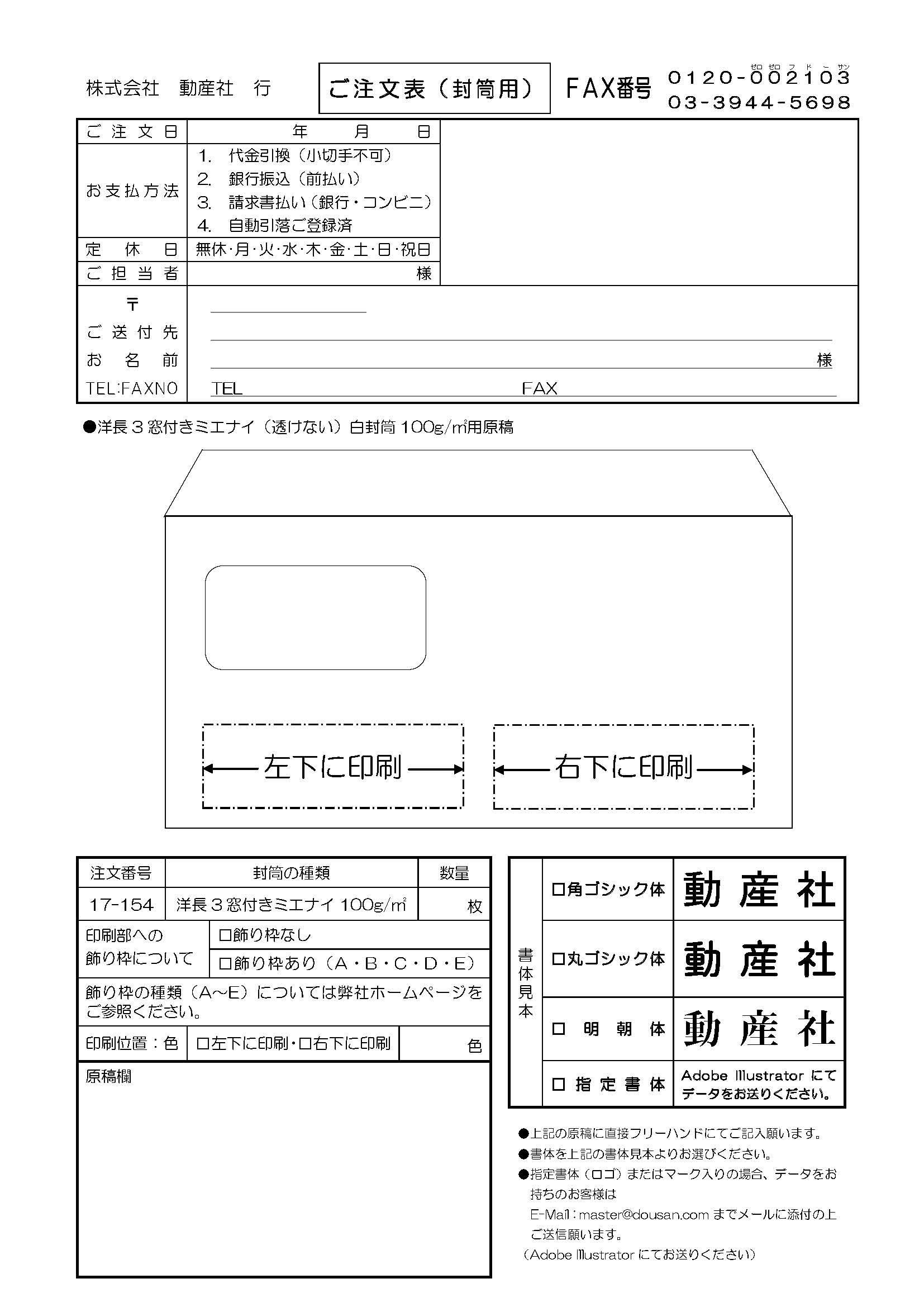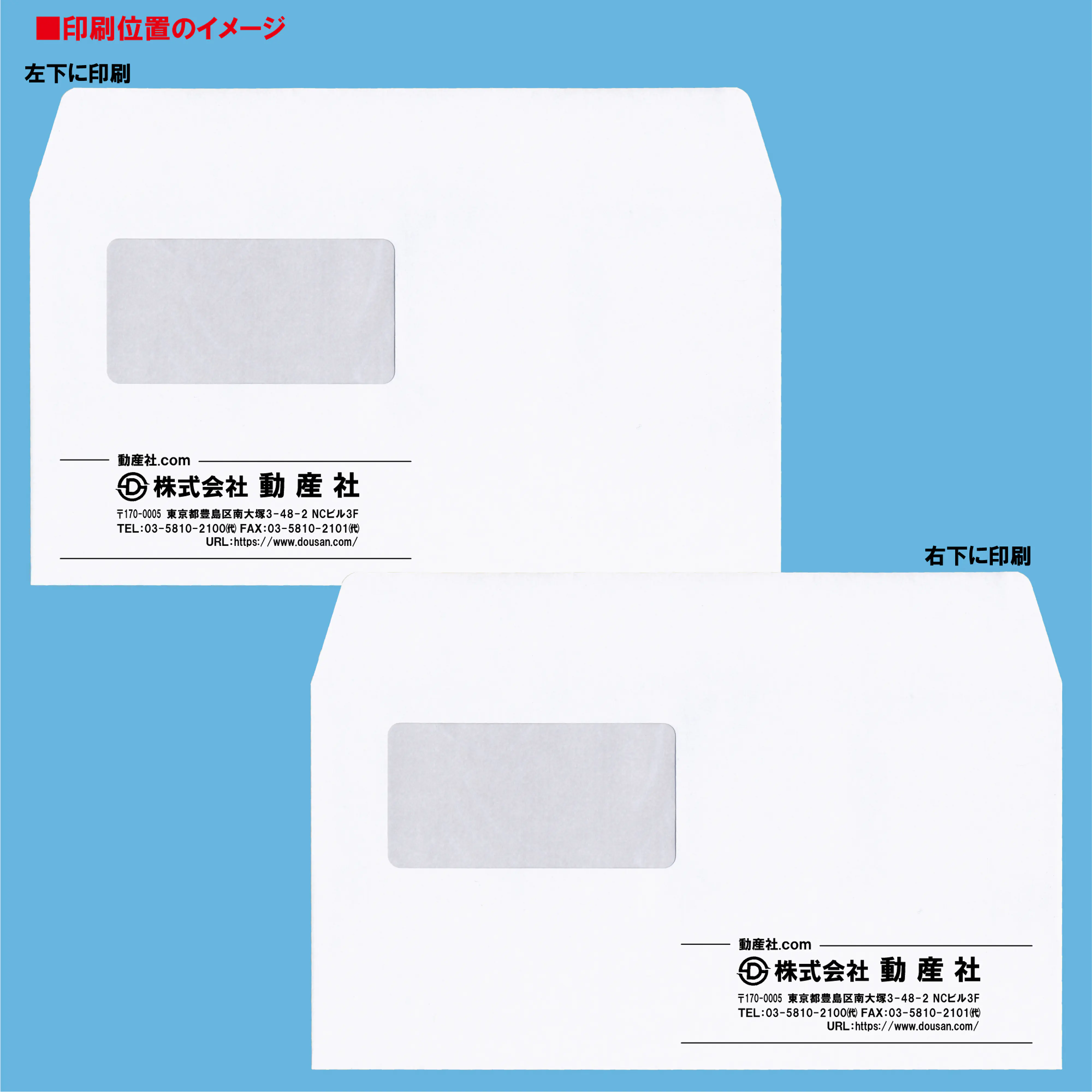 洋長3窓付きミエナイ(透けない)白封筒100g/m²の印刷を100枚よりお受けいたします。