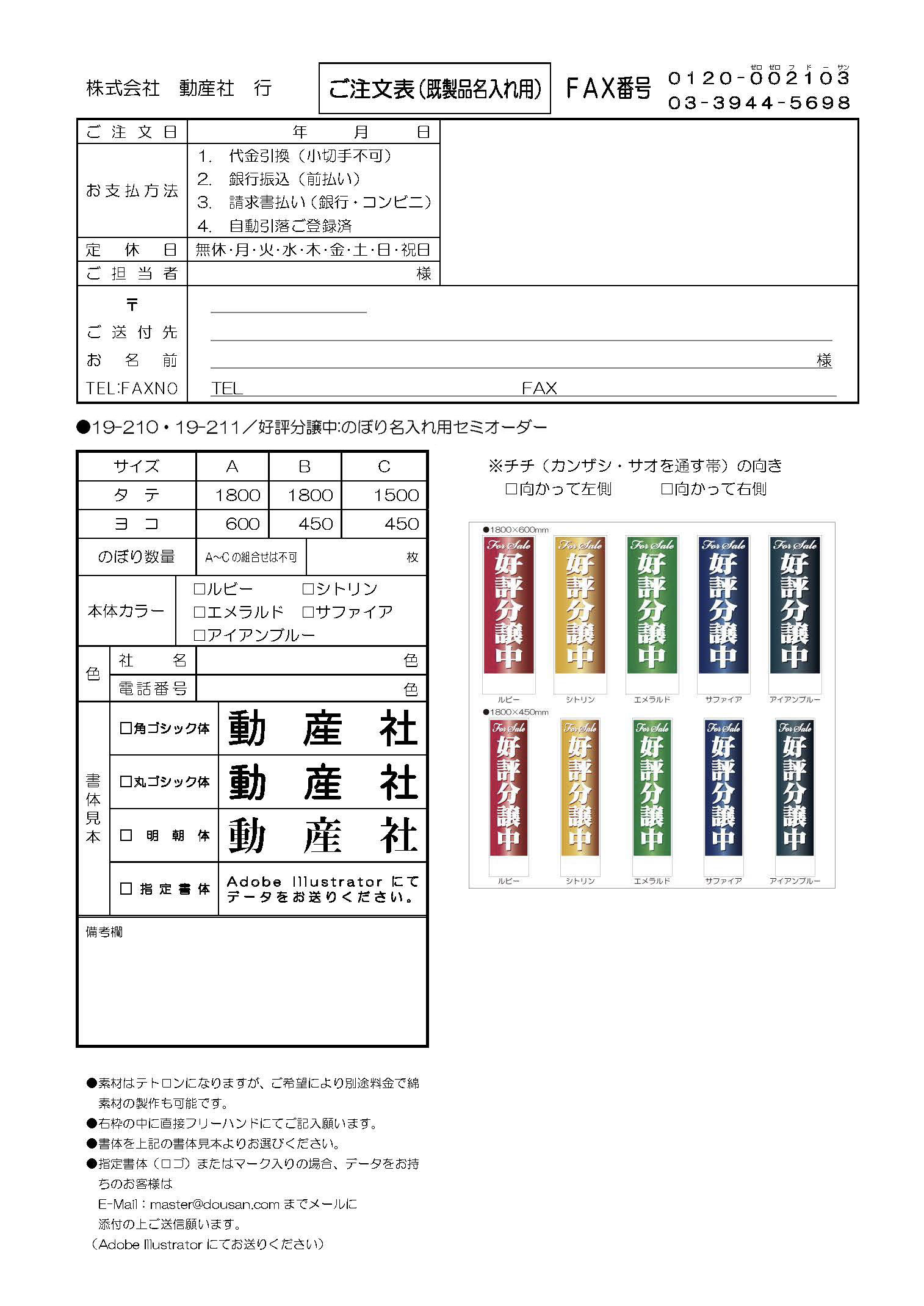 好評分譲中:のぼり名入れ用セミオーダー1800×600mm
