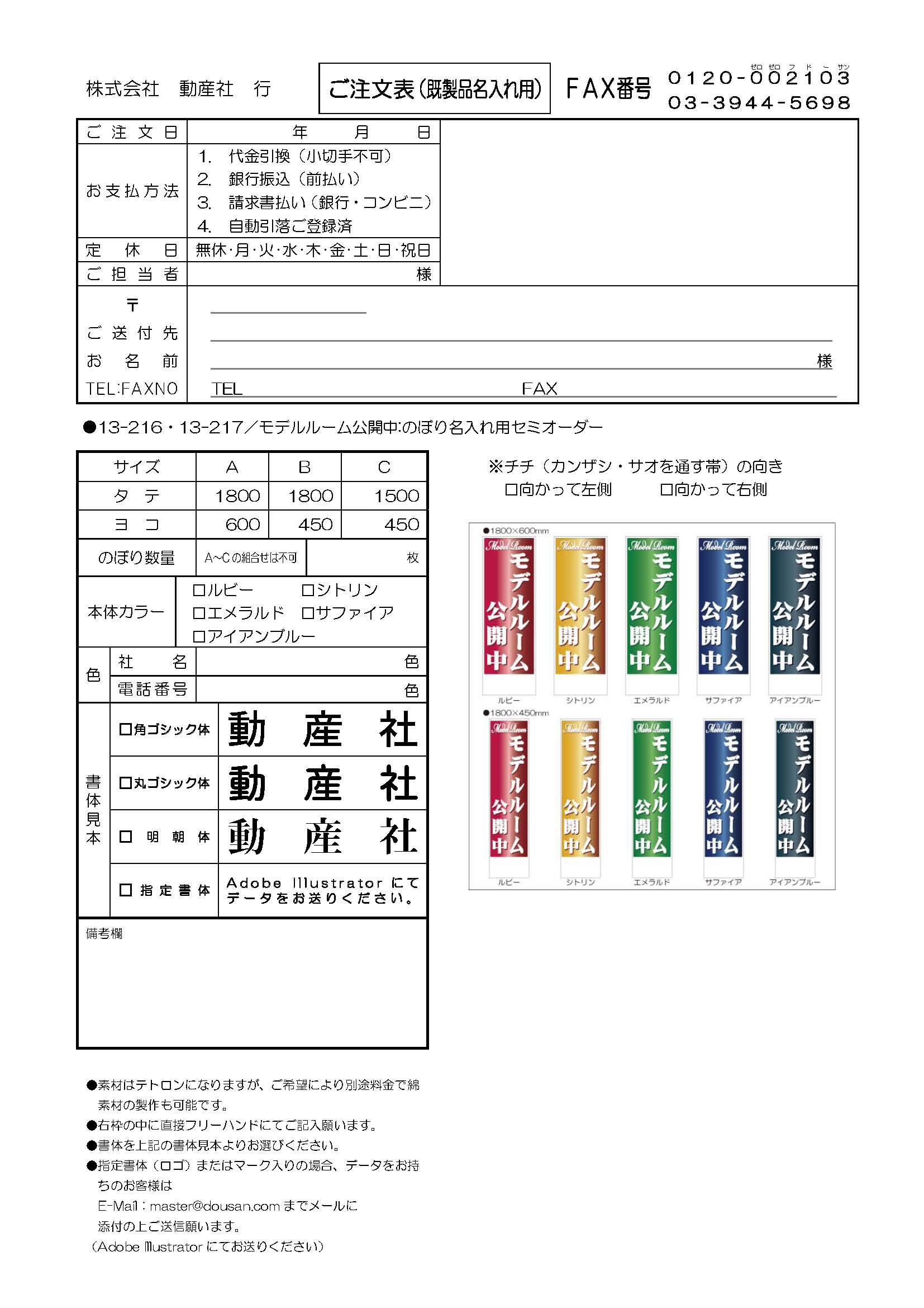モデルルーム公開中:のぼり名入れ用セミオーダー1800×600mm
