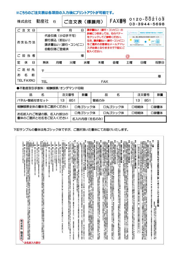 ファクス:フリーダイヤル0120-002103(もしくは03-3944-5698)