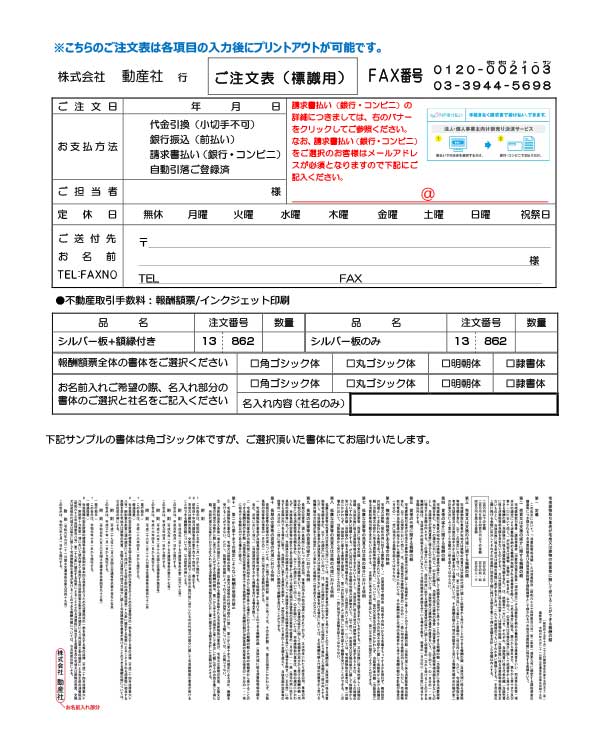 ファクス:フリーダイヤル0120-002103(もしくは03-3944-5698)