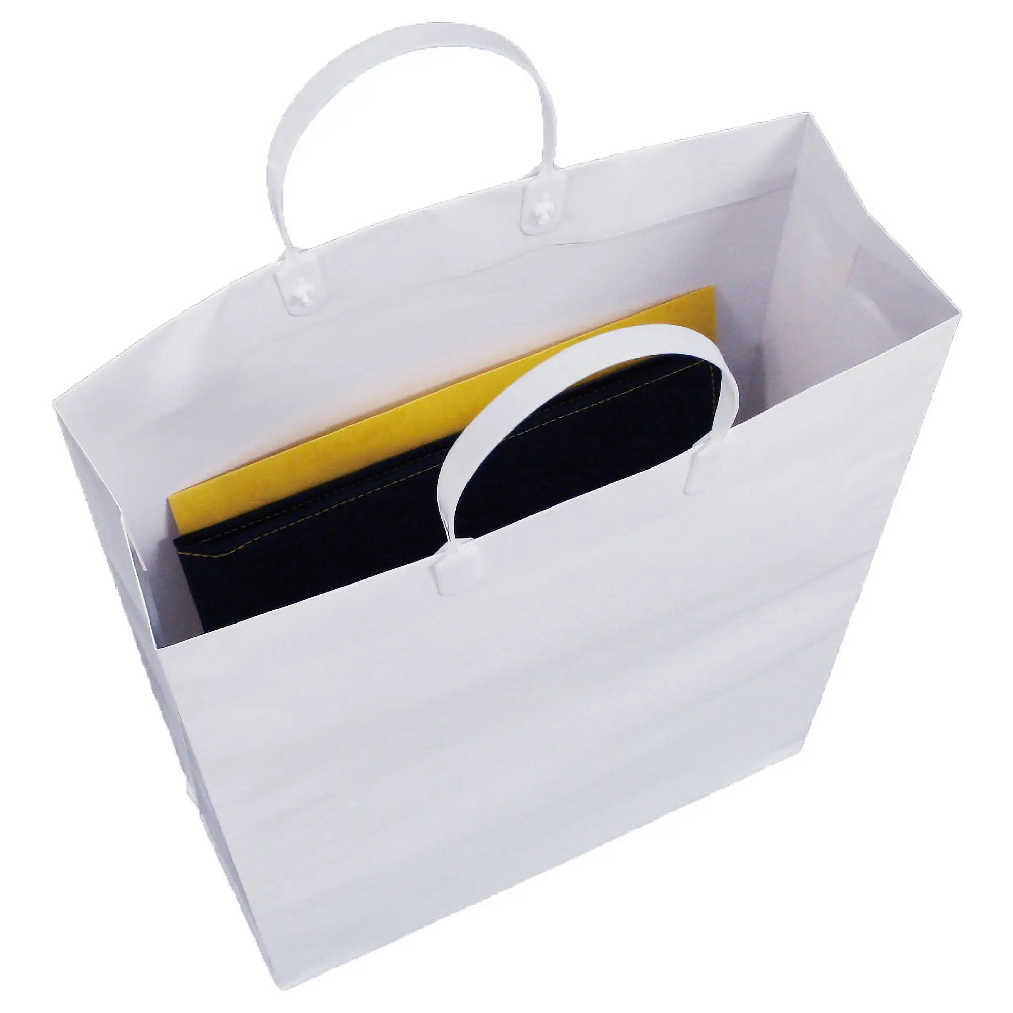 - プラスチックの持ち手(ハッピータック)を使用しているため袋口が広がらず、ご契約時の不動産ファイルや契約書類、展示場のパンフレットなどをお入しお客様にお渡しできます。