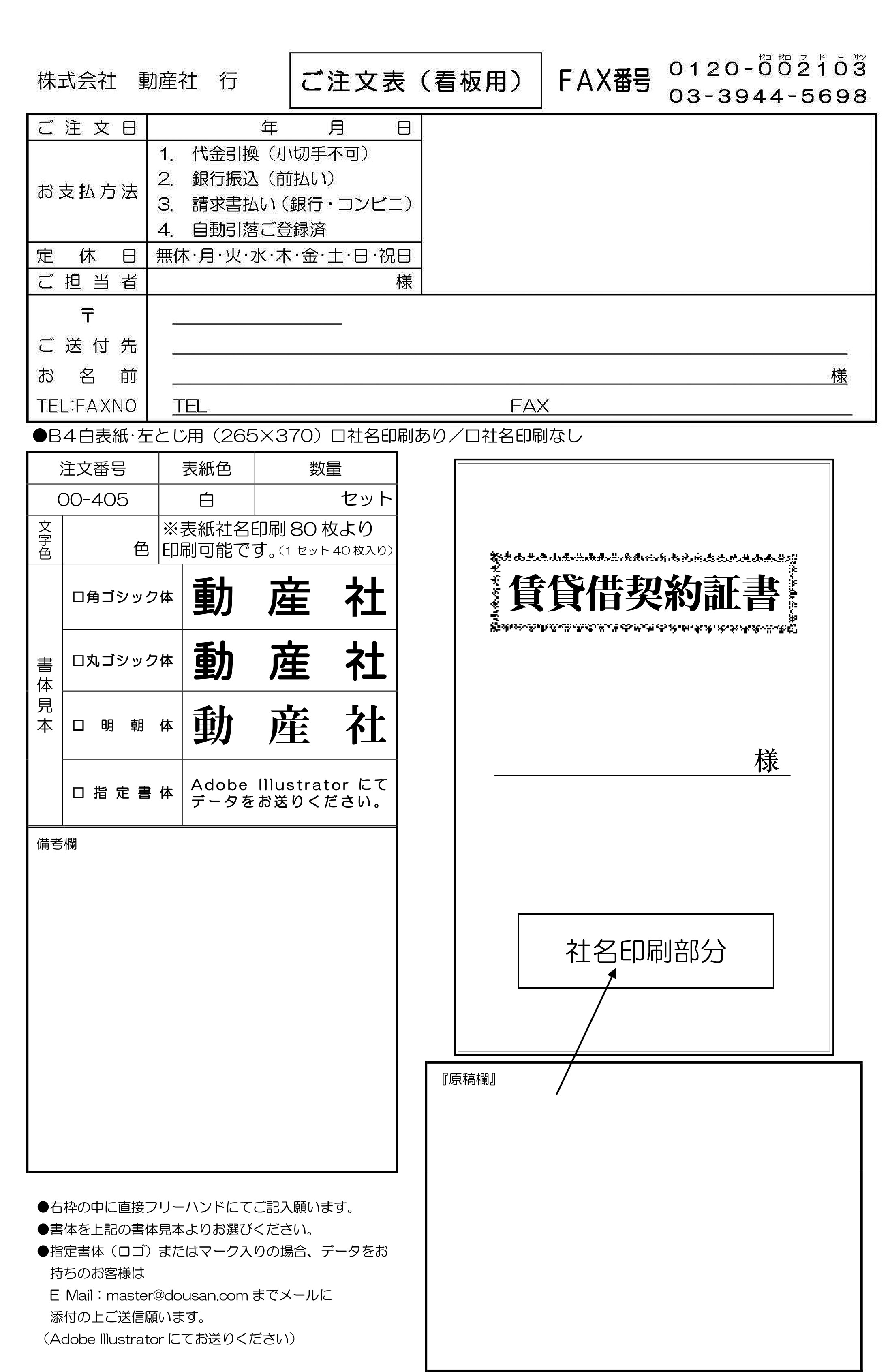 賃貸借契約証書 表紙:B4サイズ(白上質紙):1セット40枚入り
