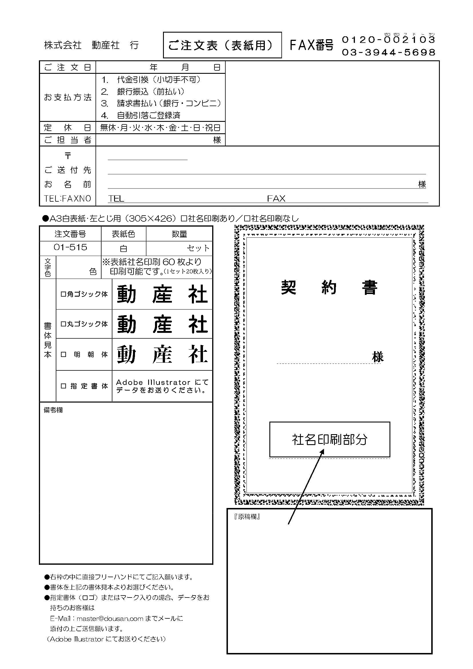 契約書 表紙:A3サイズ(白上質紙):1セット20枚入り