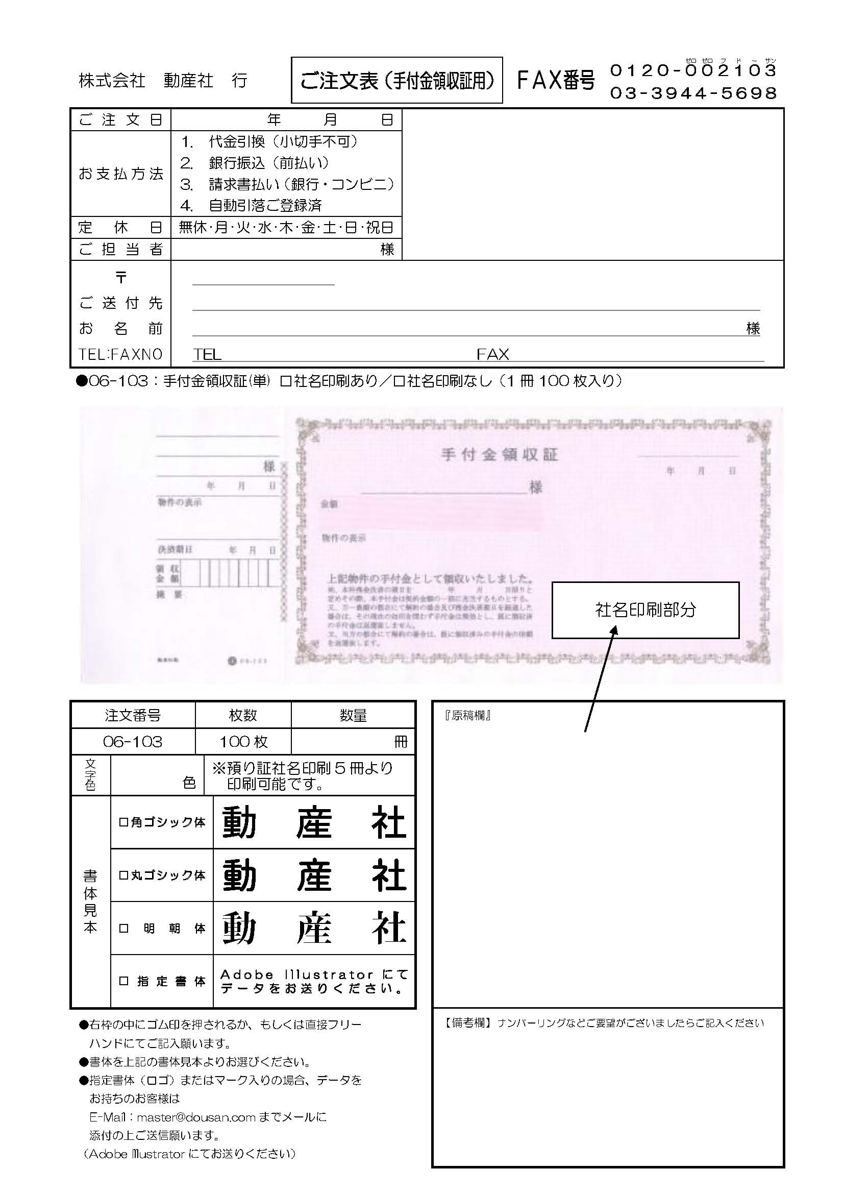 ※ナンバーリングは社名印刷ご希望のお客様に限ります。- 【お電話・ファクスでもご注文いただけます】