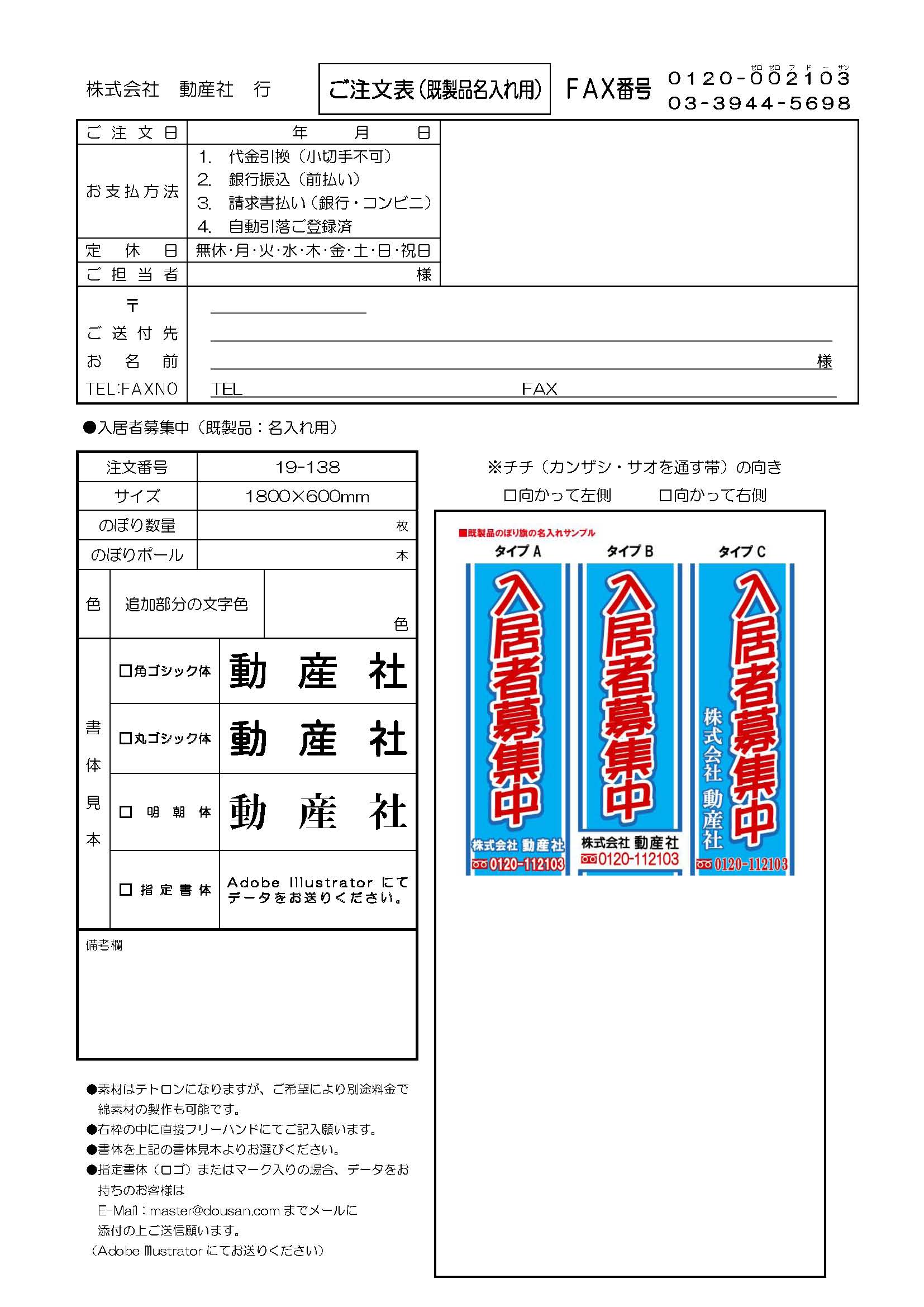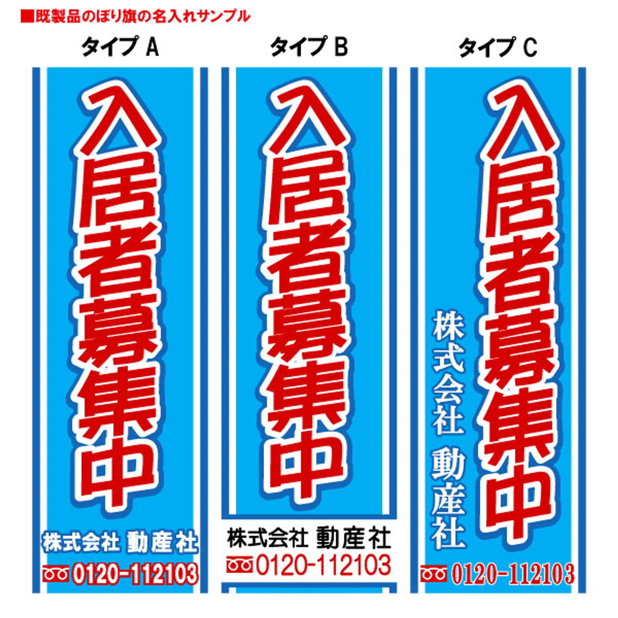 既製品のデザインに対し御社名・電話番号などをお入れし、のぼり旗を製作致します。
