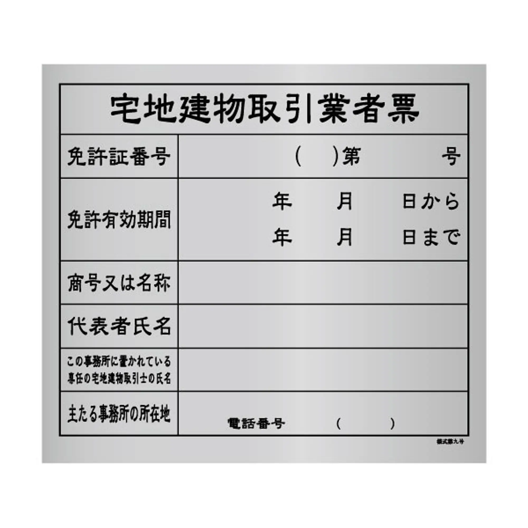 - 業者票本体:シルバー板=H353×W392×0.8mm厚