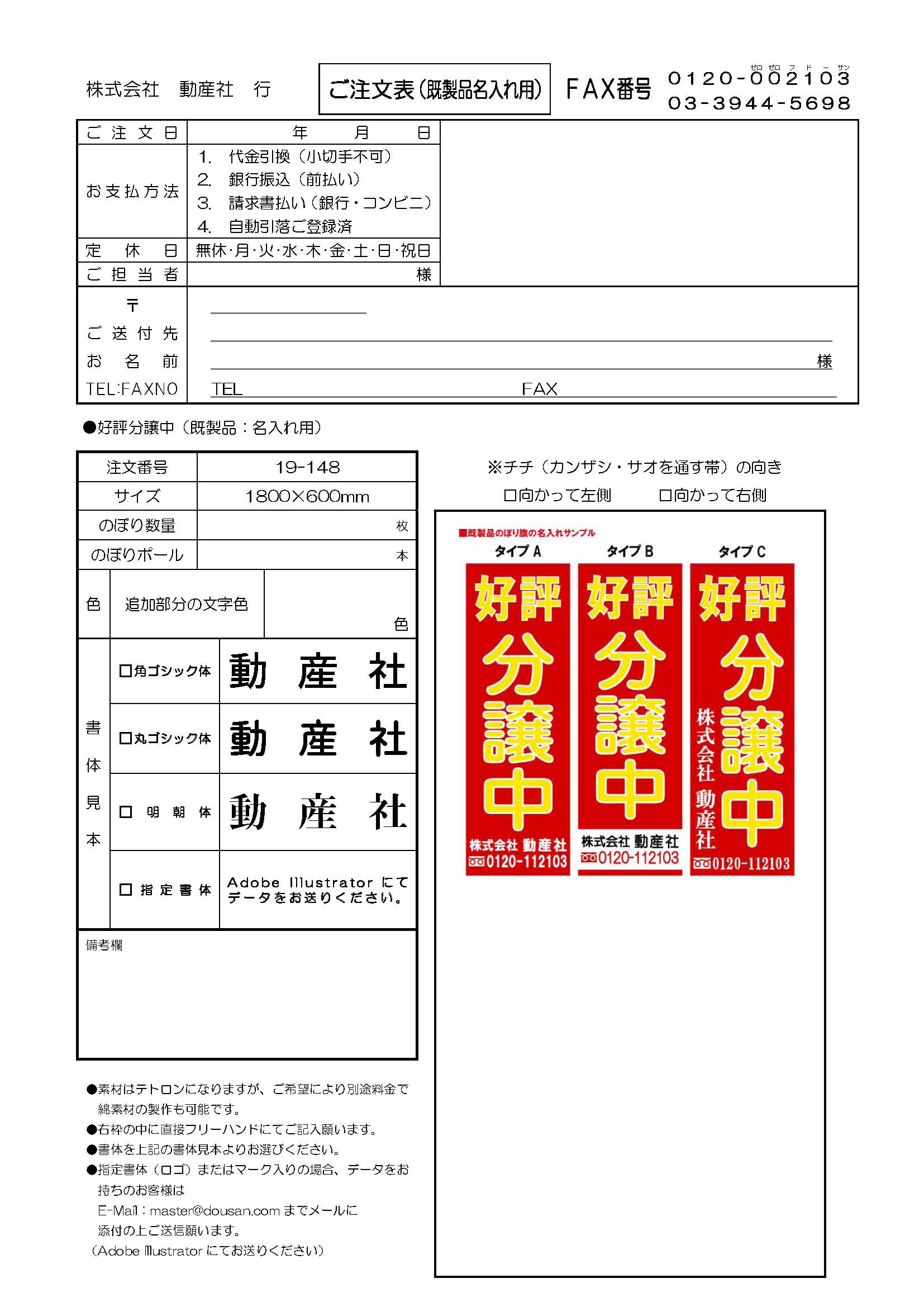 ※のぼり別染の原稿は下記の入力フォームをご利用頂くか、もしくはファクス注文フォームをプリントアウト後、ご記入の上FAXにて送信願います。