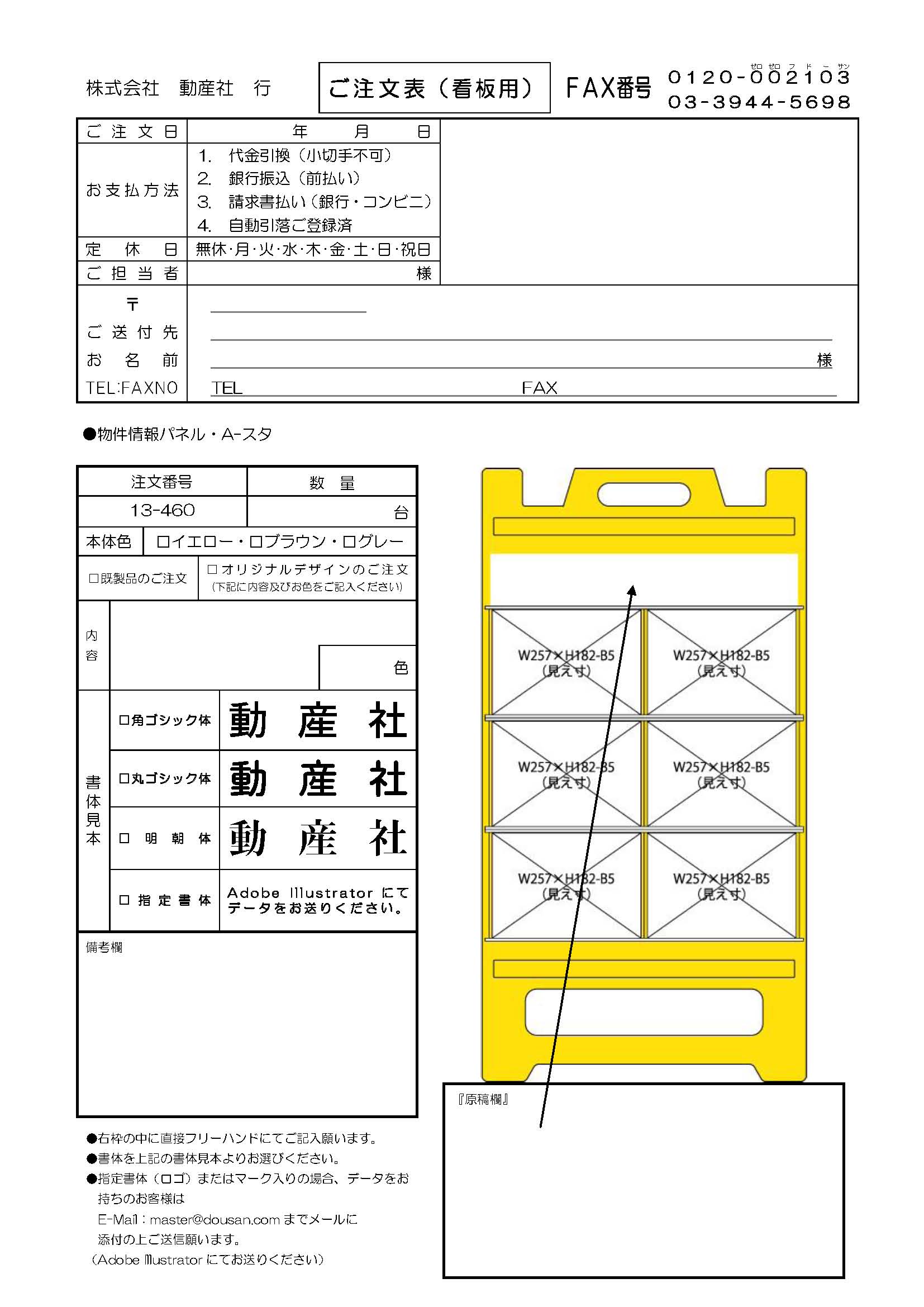 ファクス注文フォーム:PDF形式|JPEG形式 - 【オプション】