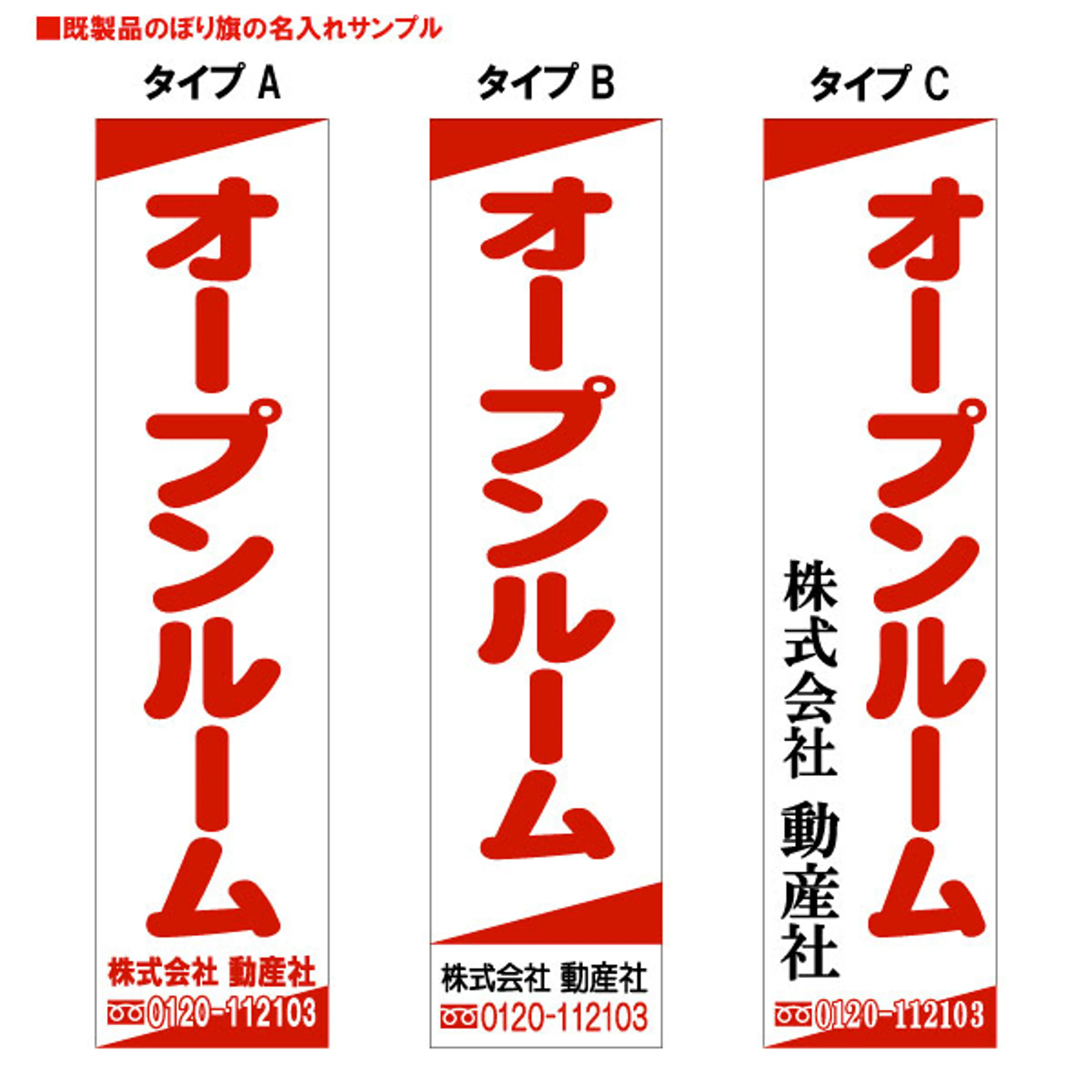 既製品のデザインに対し御社名・電話番号などをお入れし、のぼり旗を製作致します。