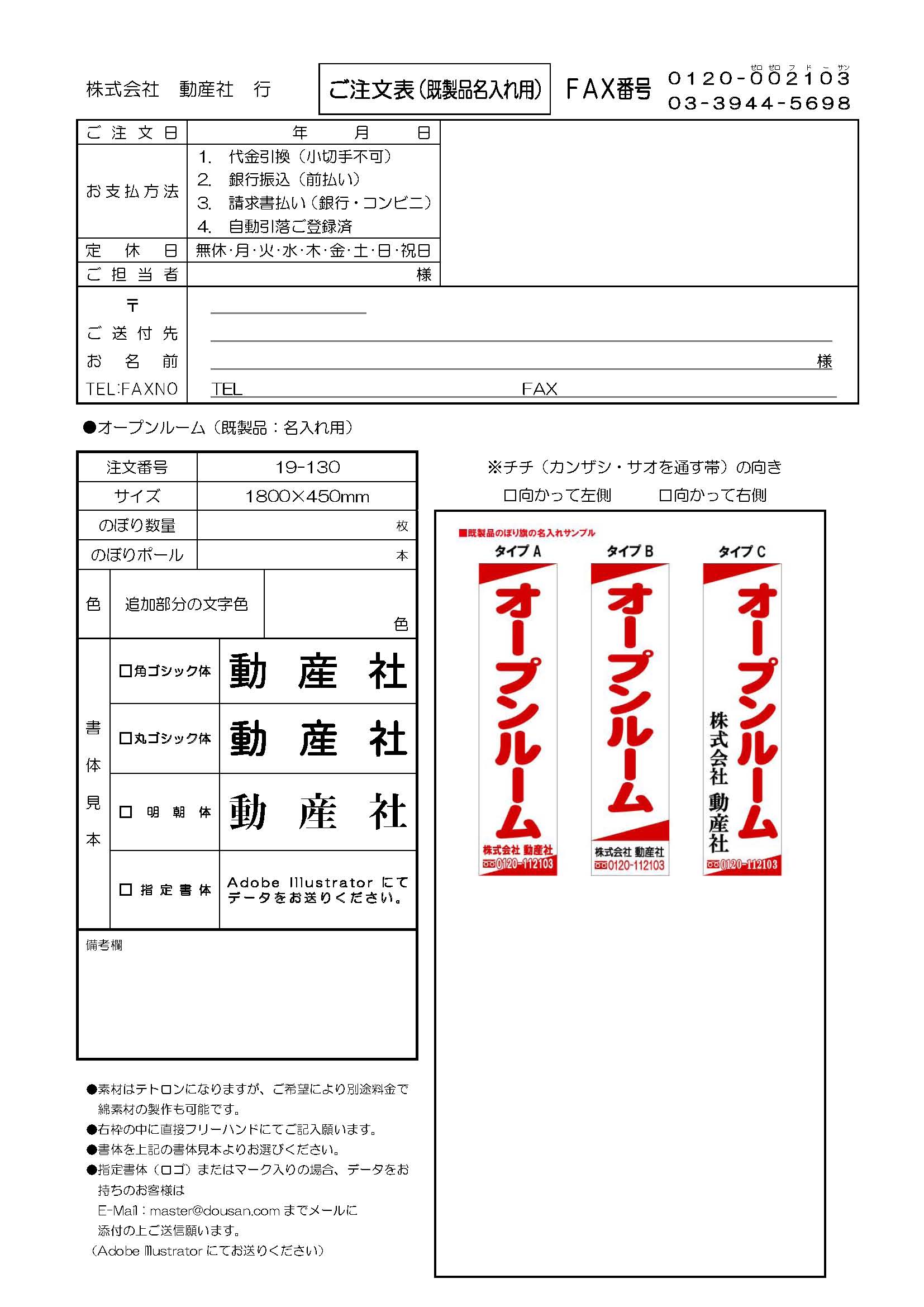 ※のぼり別染の原稿は下記の入力フォームをご利用頂くか、もしくはファクス注文フォームをプリントアウト後、ご記入の上FAXにて送信願います。
