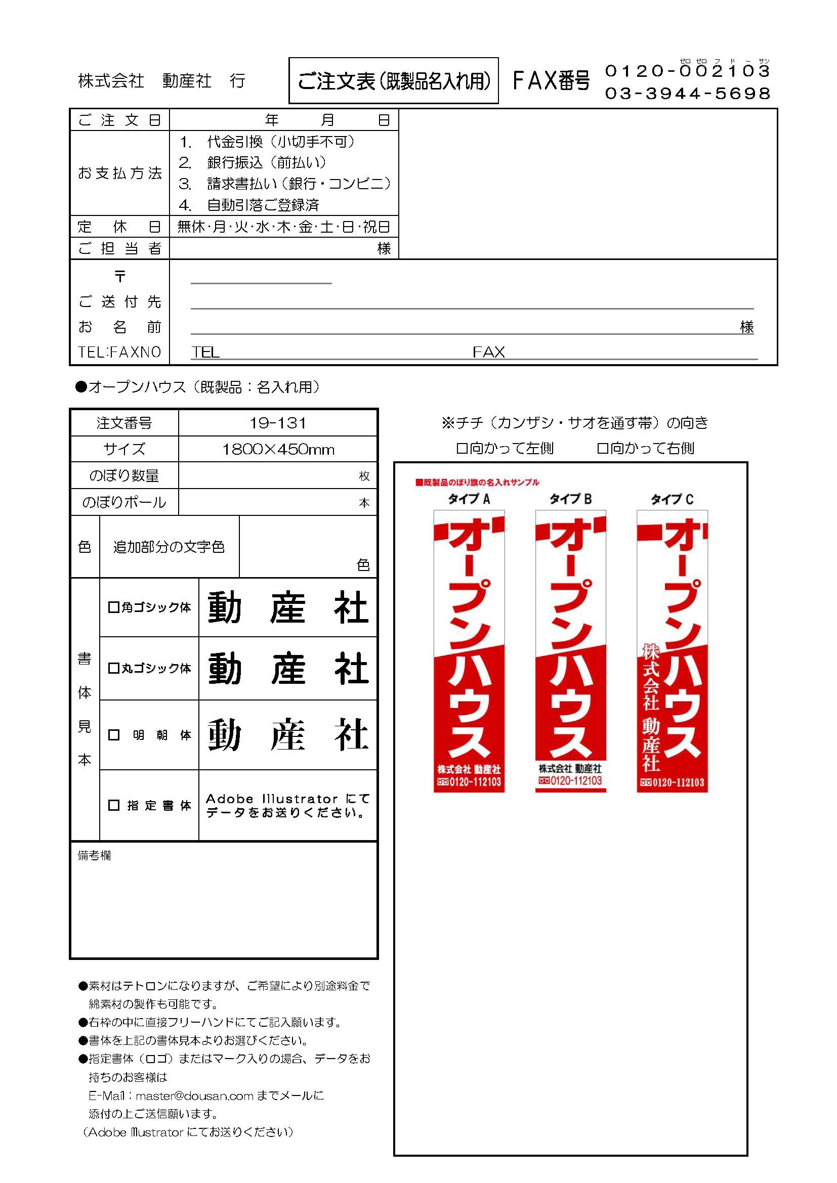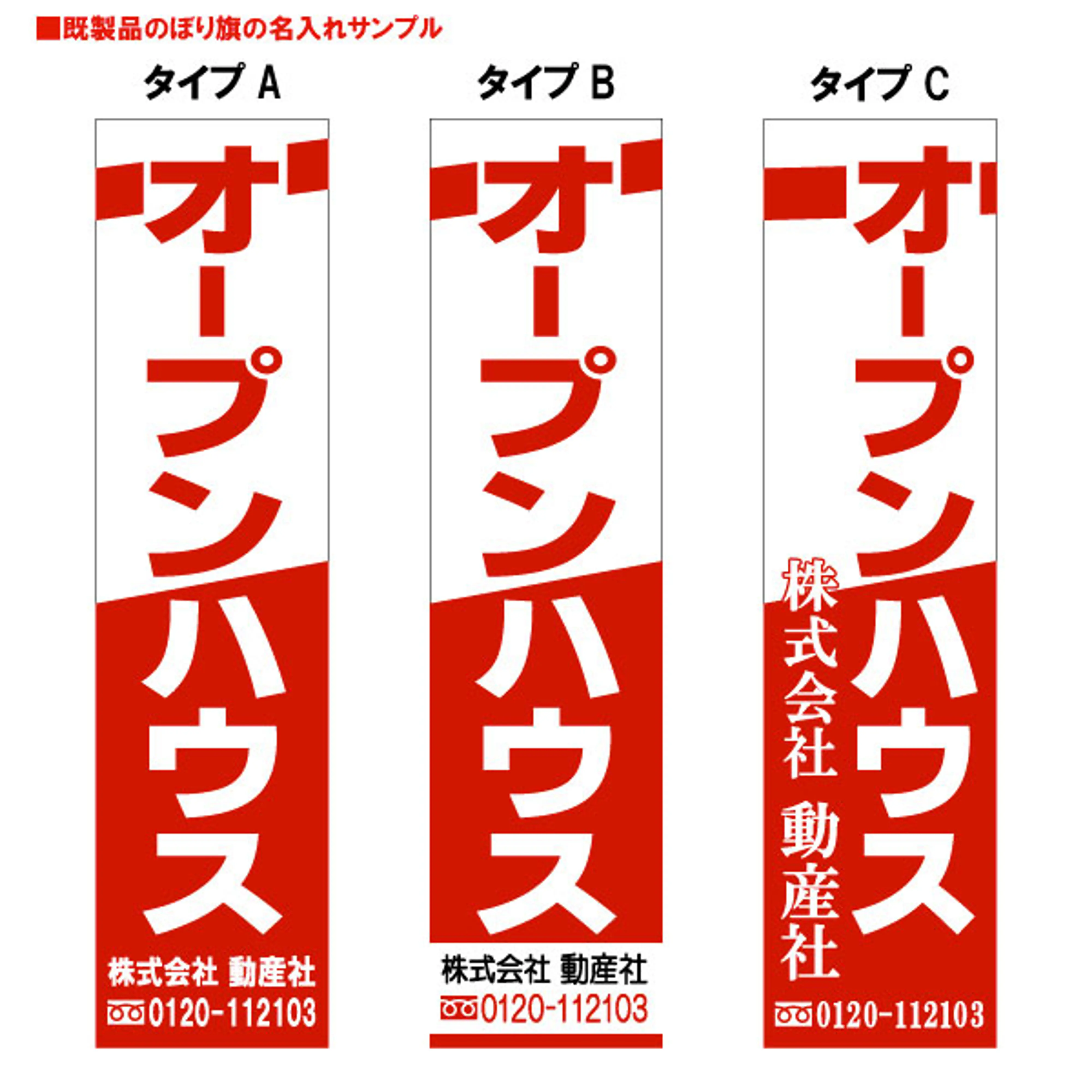 既製品のデザインに対し御社名・電話番号などをお入れし、のぼり旗を製作致します。