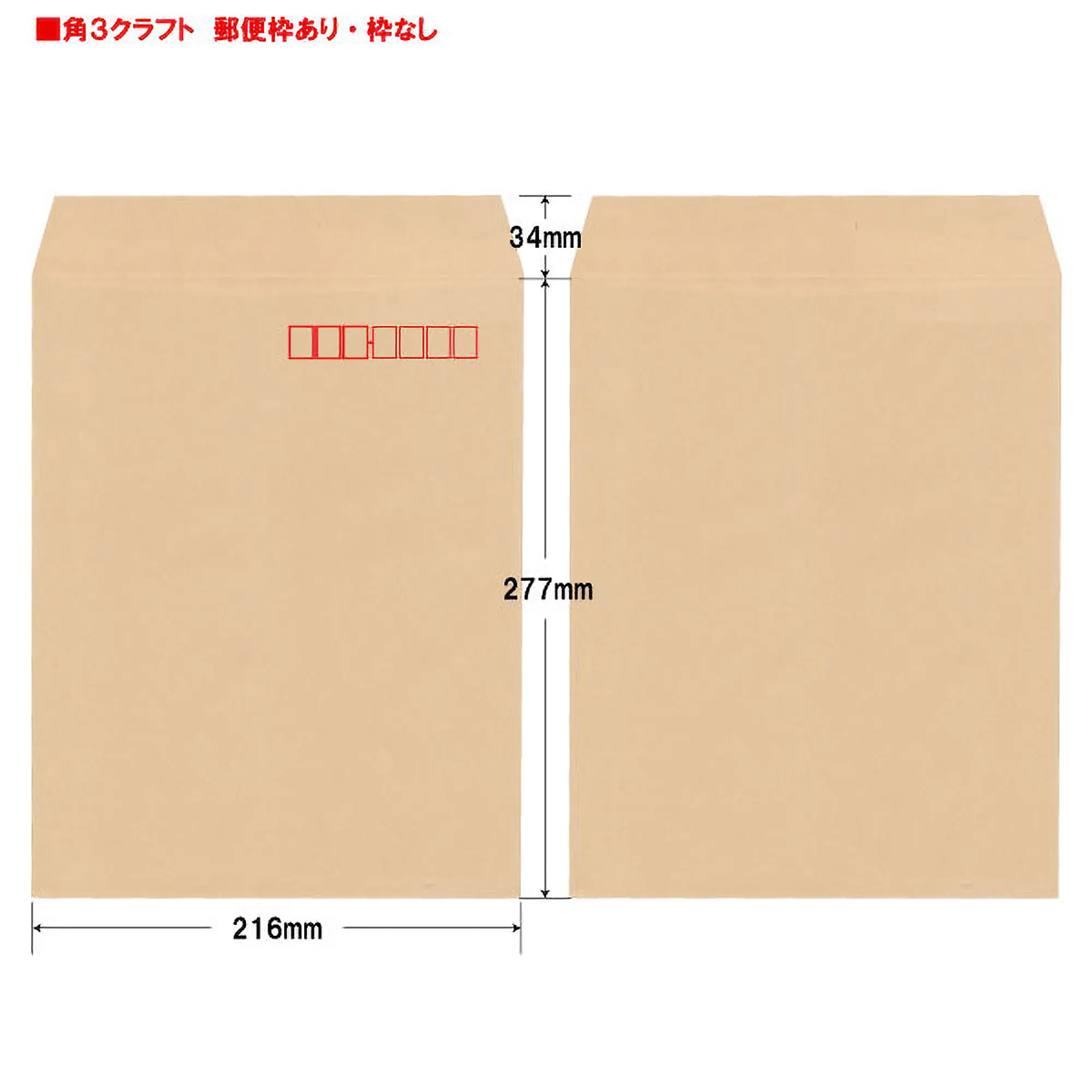 - 角3クラフト封筒(用紙B5サイズ用)※郵便枠あり(赤)・枠なしの種類があります。