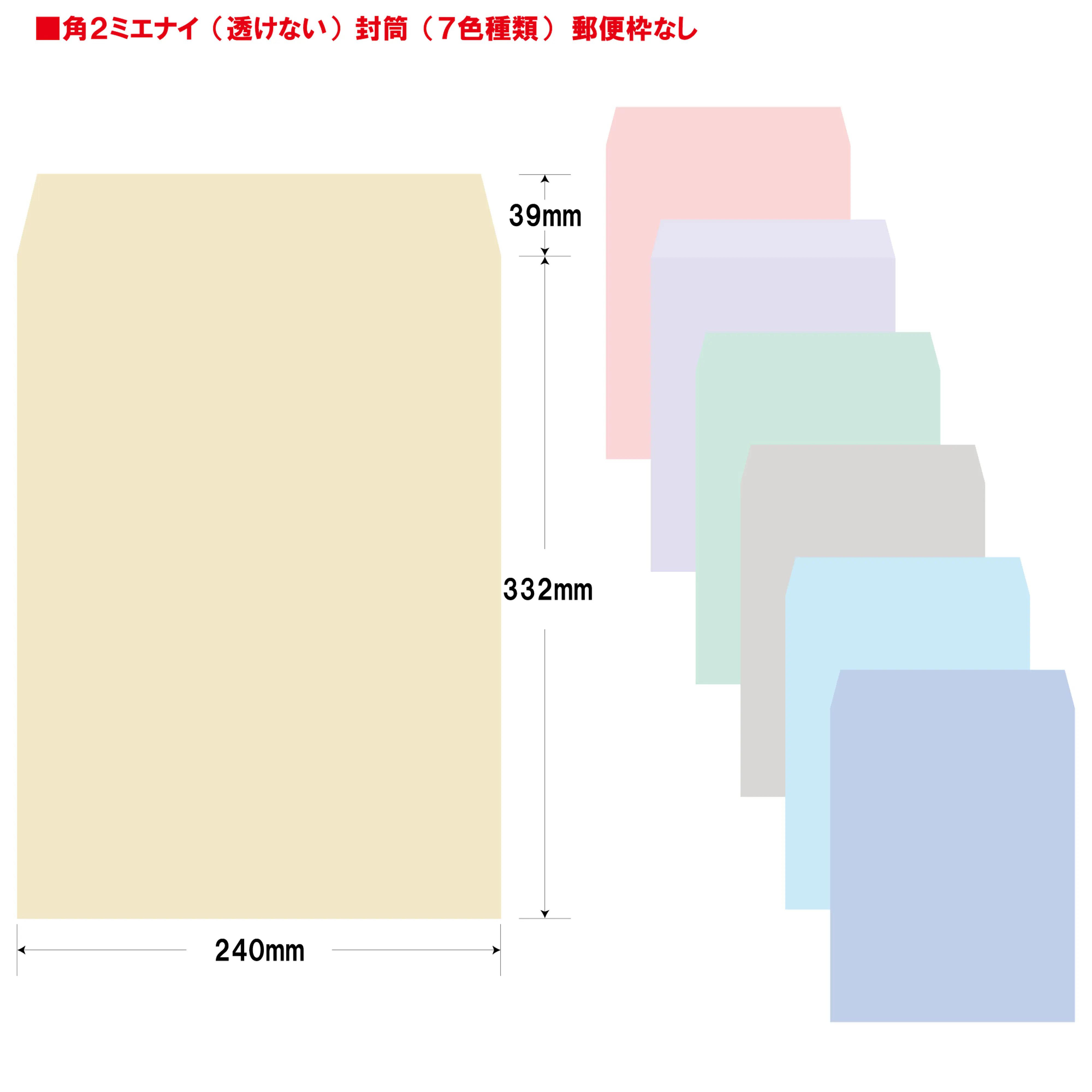 角2ミエナイ(透けない)封筒(7色種類)100g/m²の印刷を100枚よりお受けいたします。