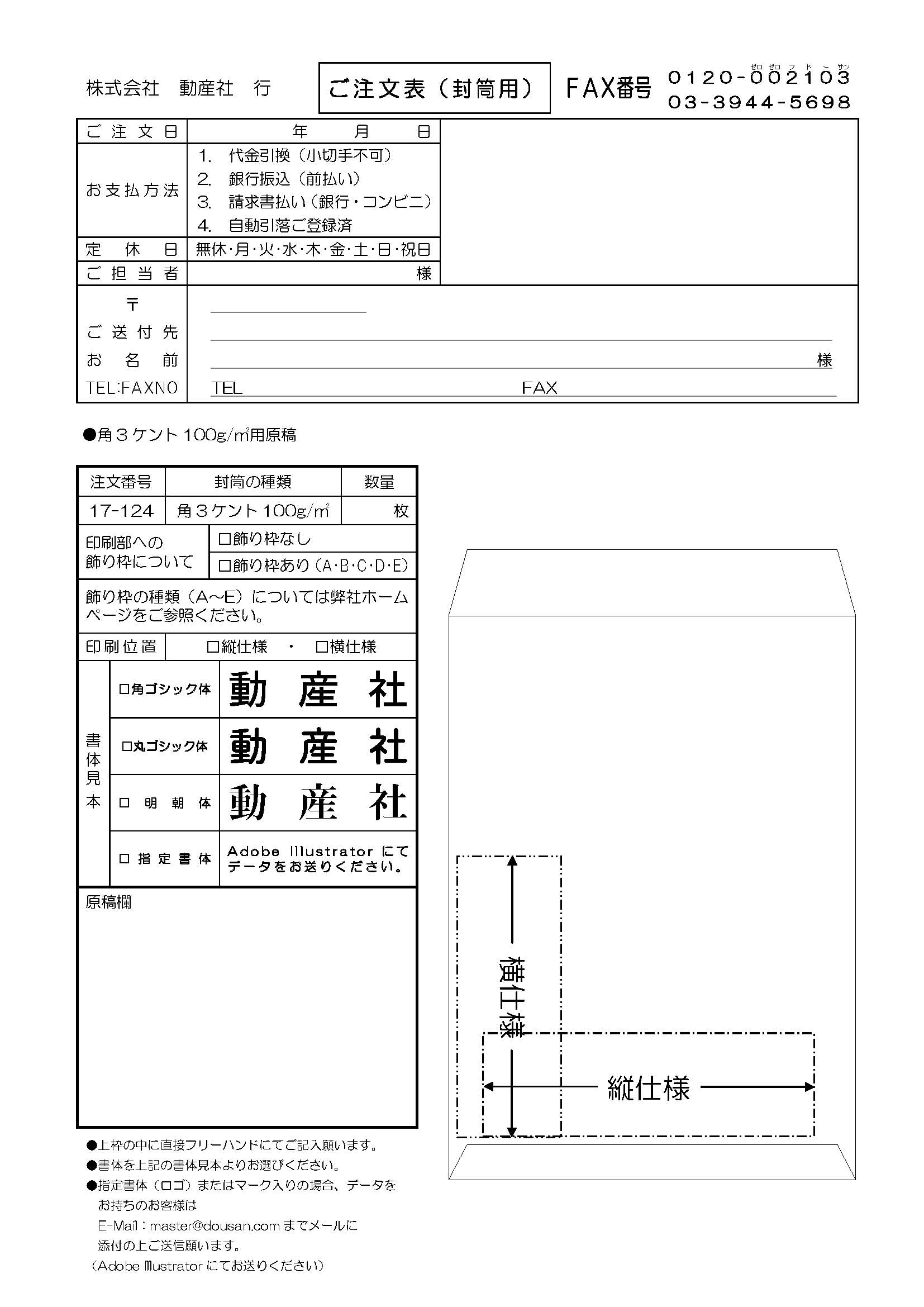角3ケント100g/m²封筒の印刷を100枚よりお受けいたします。