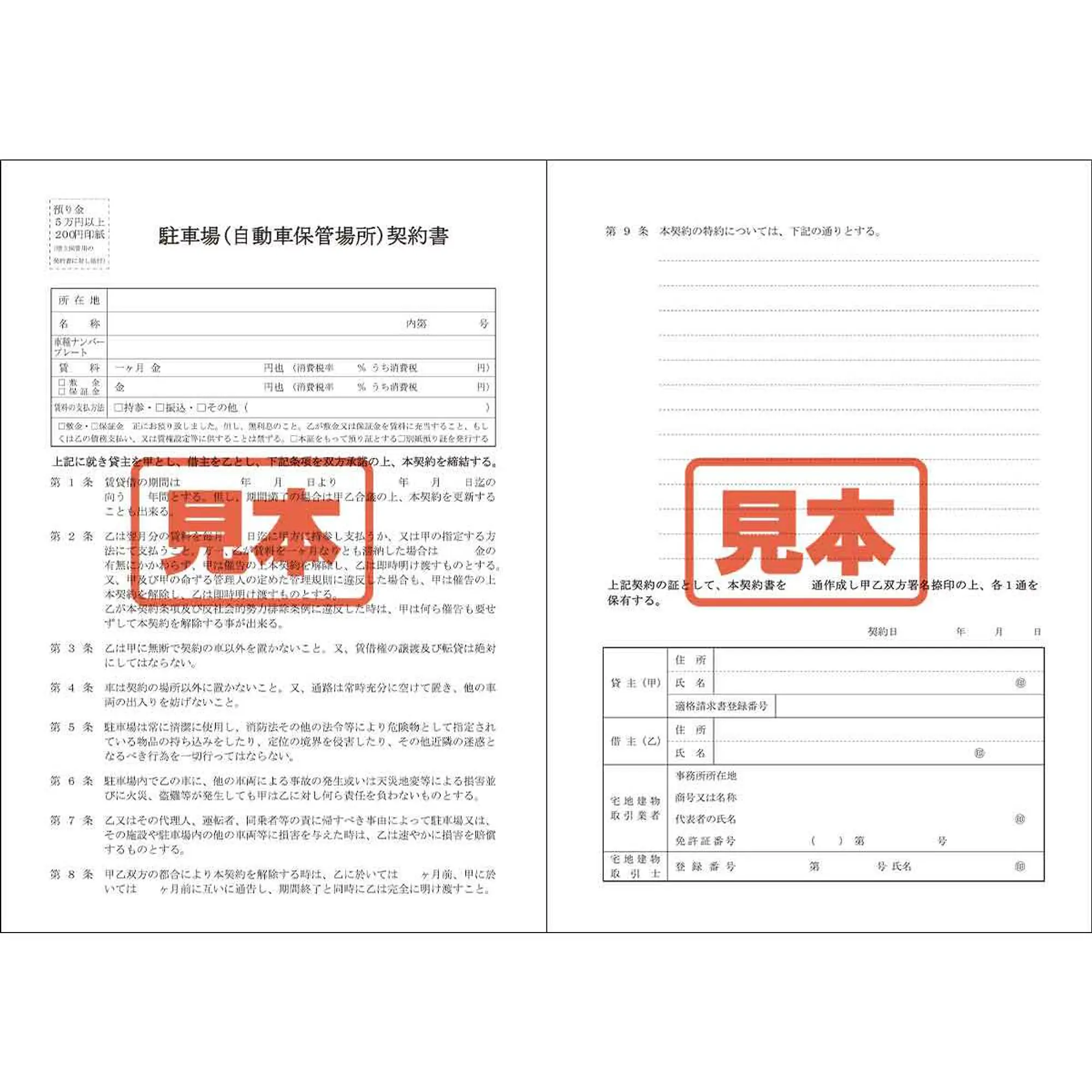 ダウンロード・駐車場賃貸借契約書 A4サイズ