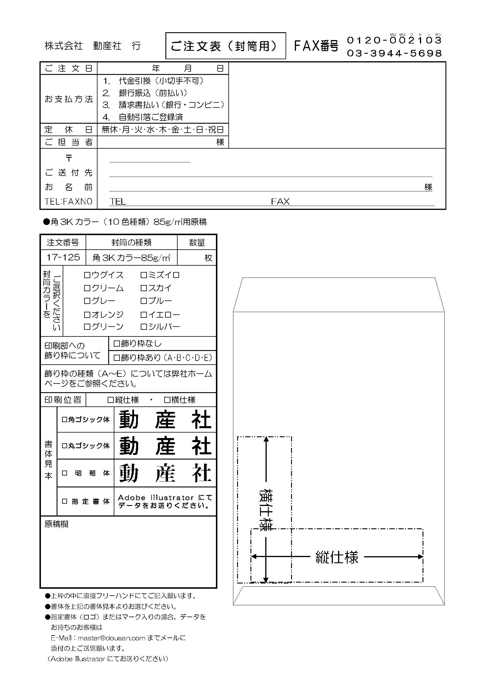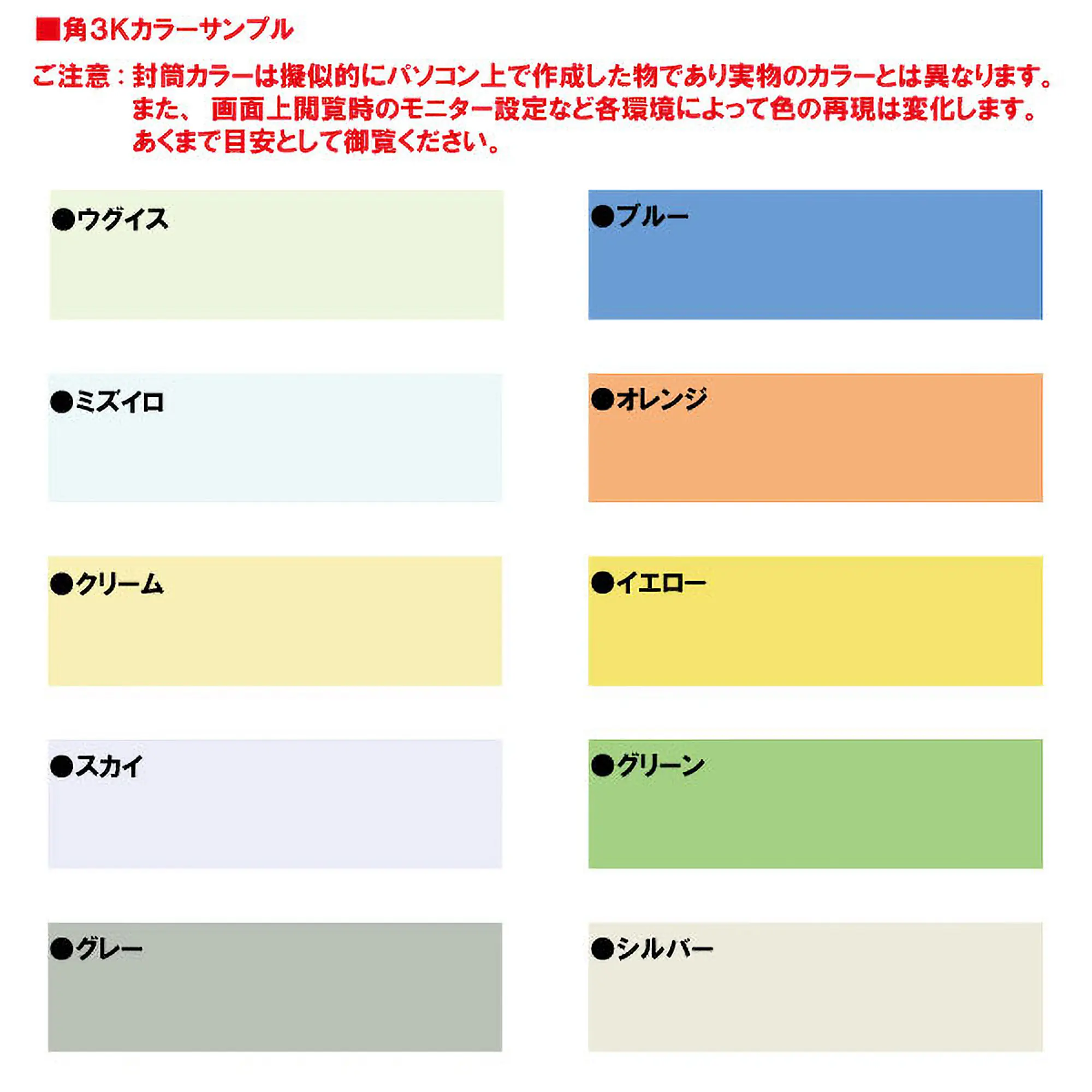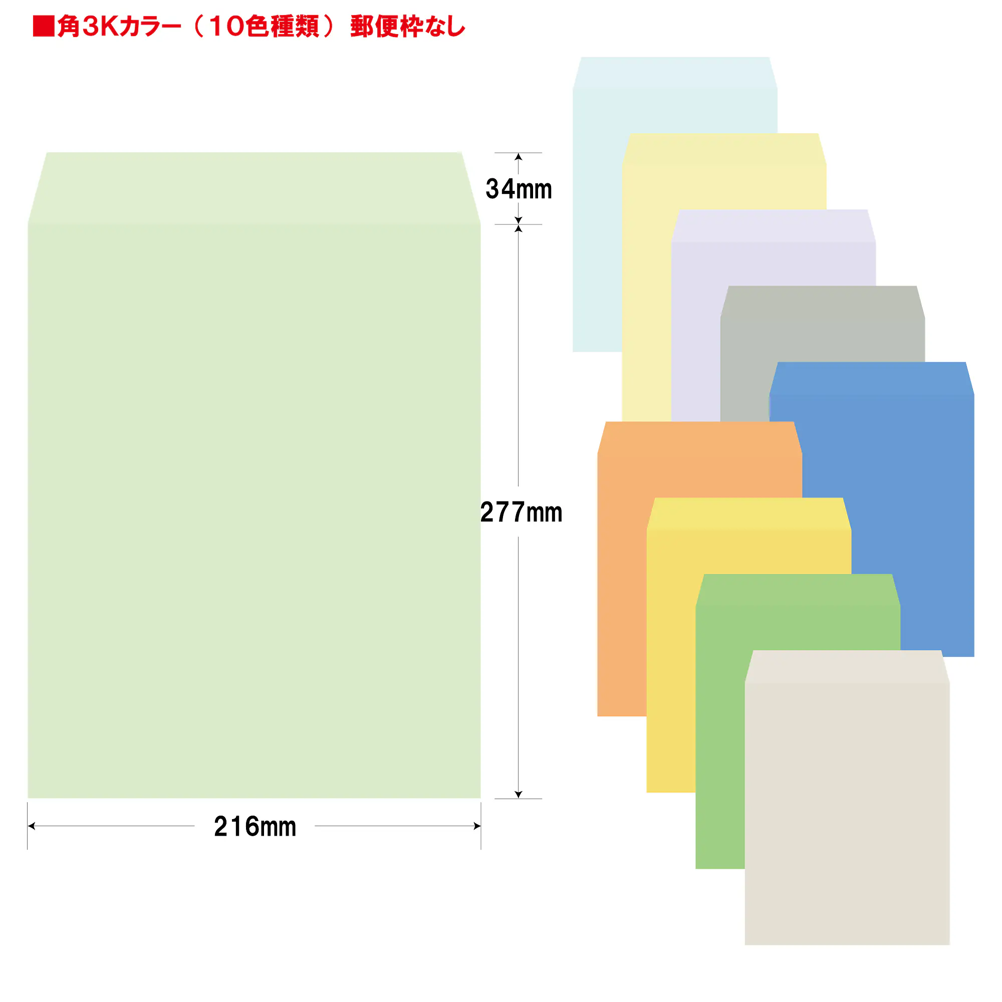 角3Kカラー(10色種類)85g/m²封筒社名入れ印刷