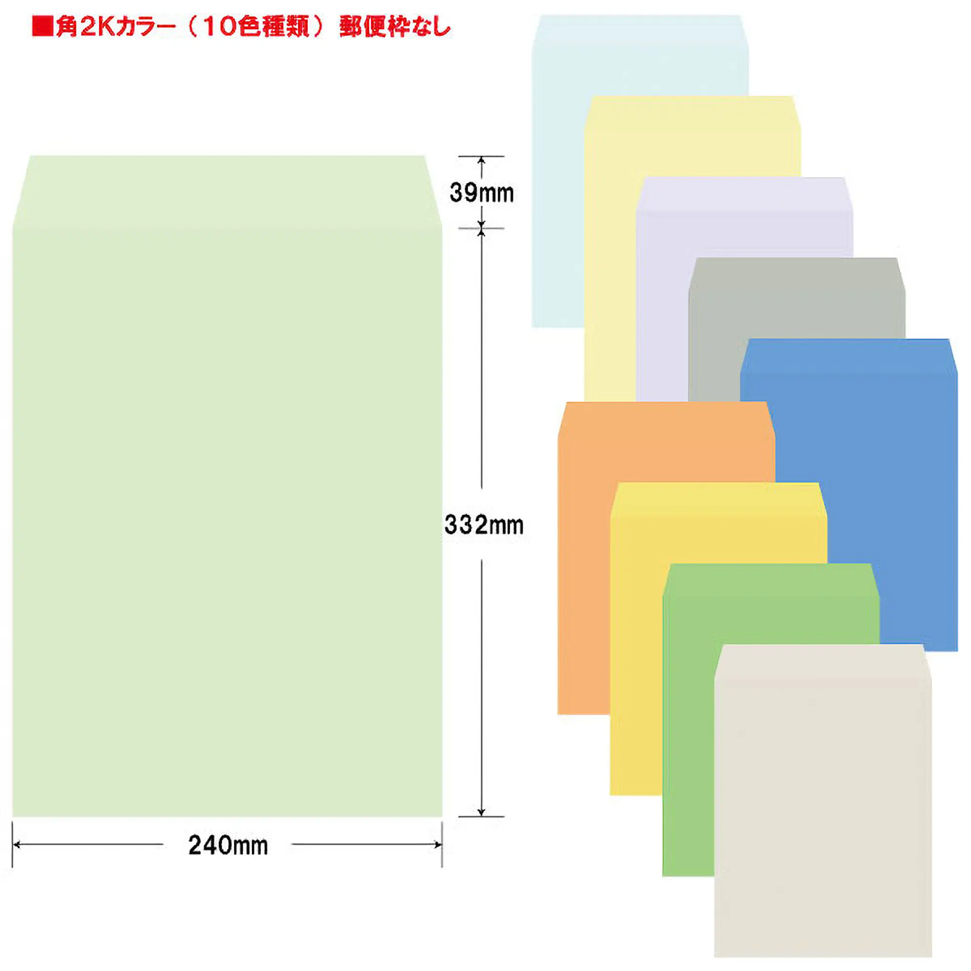 - 角2Kカラー封筒(用紙A4サイズ用)※郵便枠なし