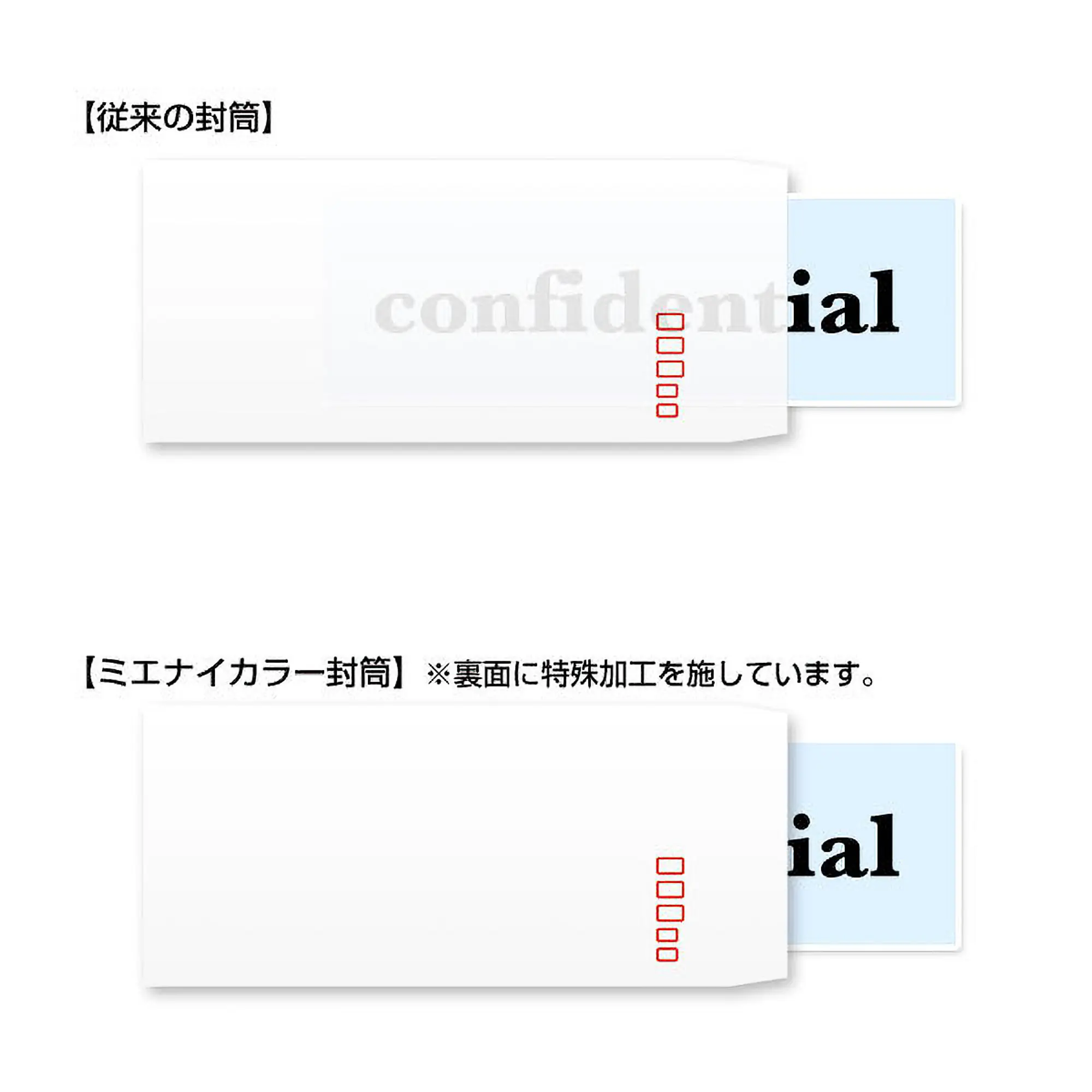 中身が透けない特殊加工が封筒の内側にされている為、契約書・請求書・明細書など機密情報の漏洩を防ぐ封筒です。※ご注文の際の数量は、封筒の枚数ではなくセット数をカートにお入れ頂きますようお願いいたします。