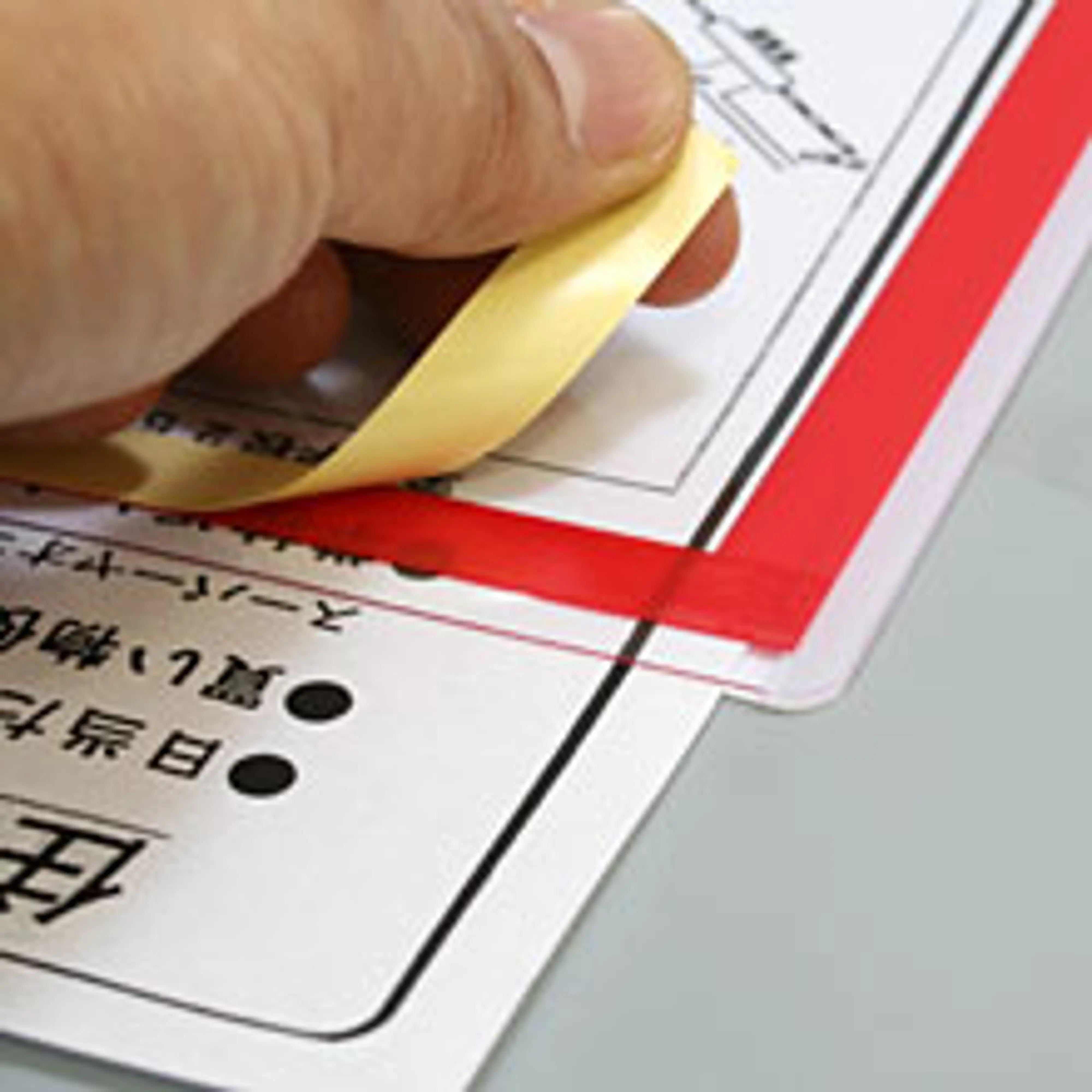 他社名が隠せます。ガラスに貼り付けた時上部からの出し入れですので用紙が落ちる事の無いカードケースタイプです。