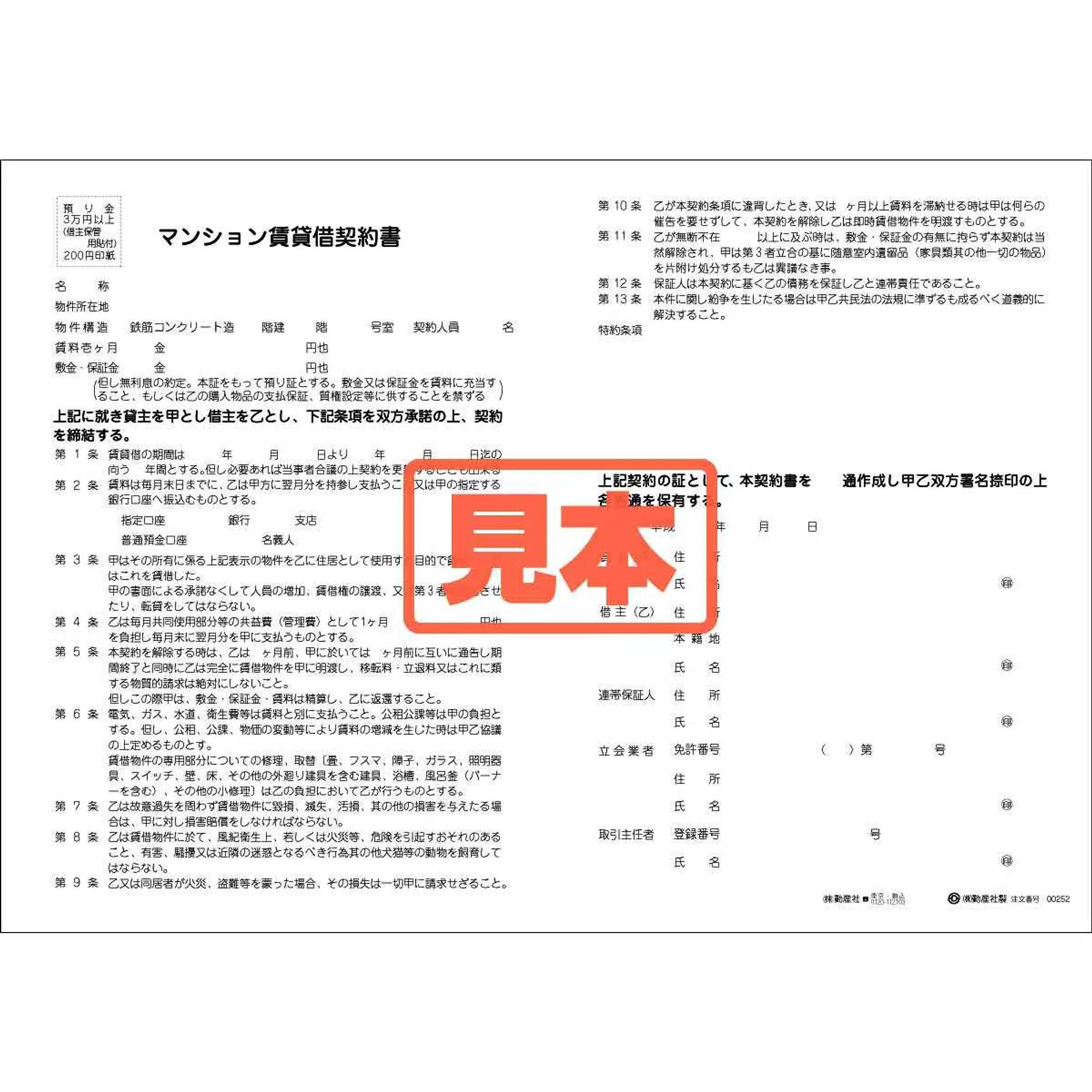 ダウンロード・マンション賃貸借契約書(中部)