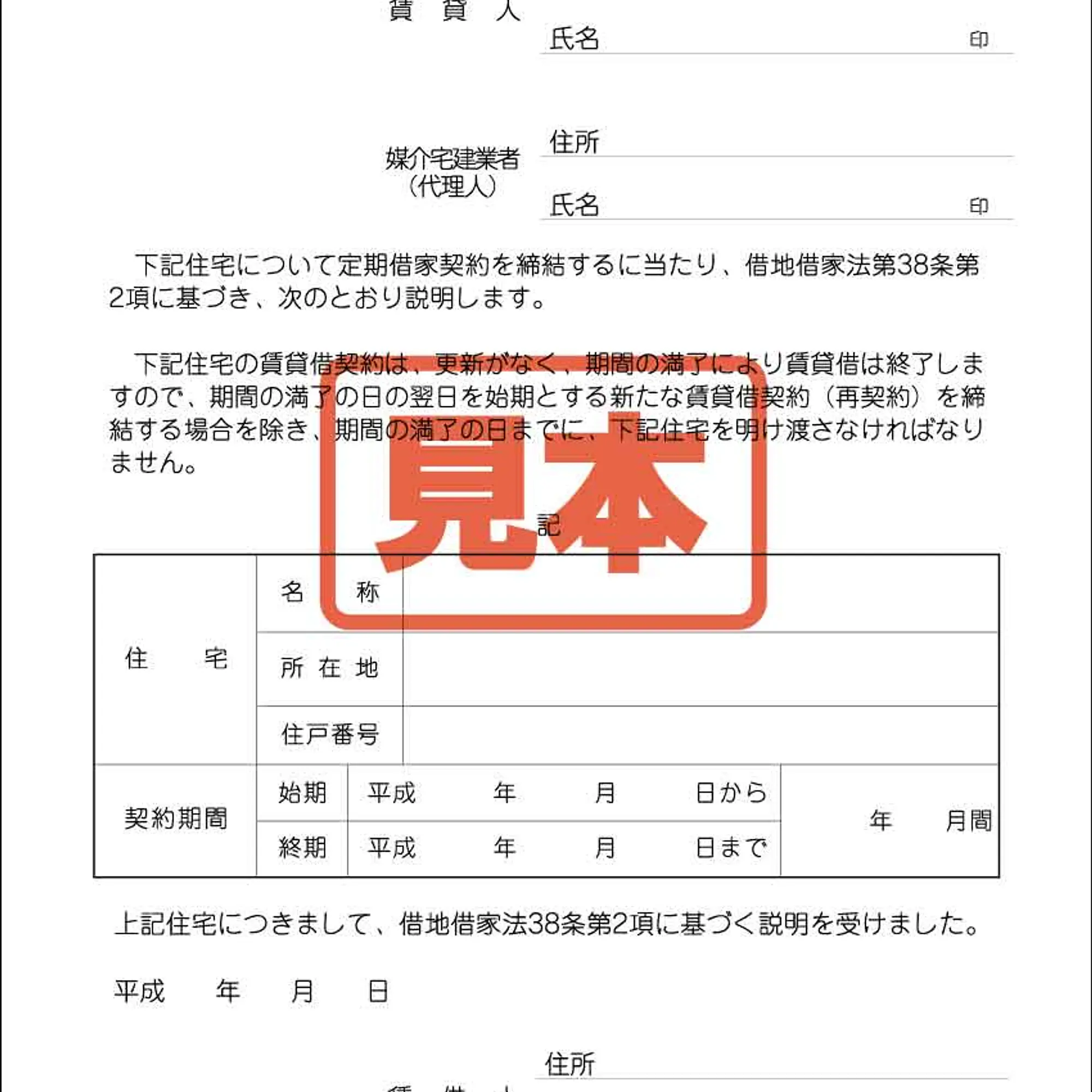 定期借家契約についての説明