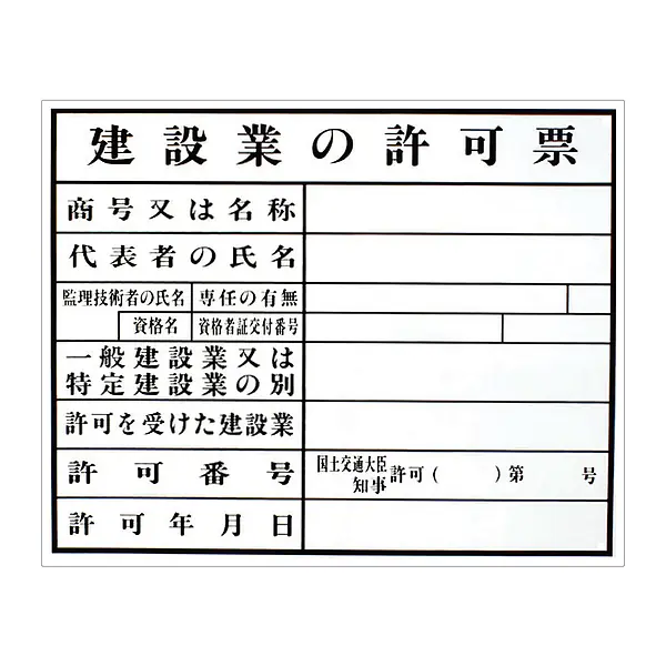 建設業の許可票:現場用・塩ビ
